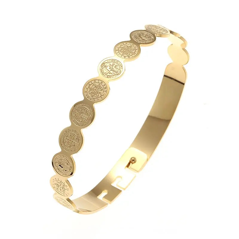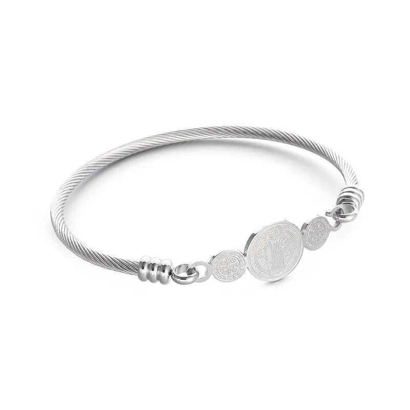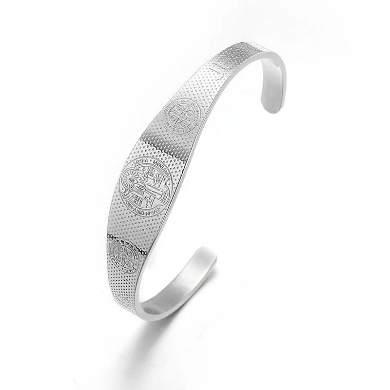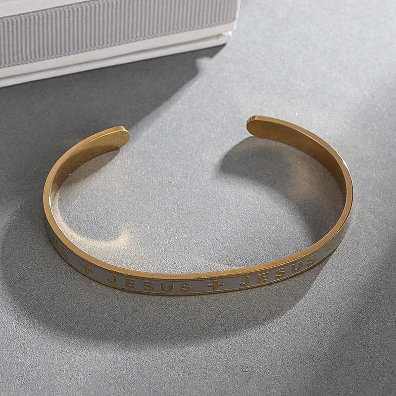Stainless Steel Cross Jesus Alphabet Bracelet for Men Religious Prayer Bracelet Christian Cross Cuff Baptism Faith Jewelry