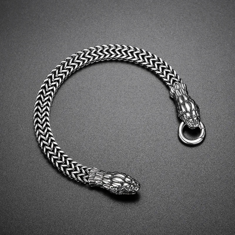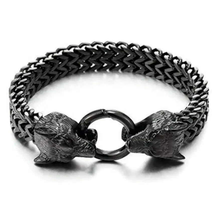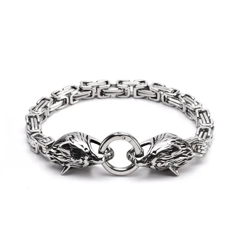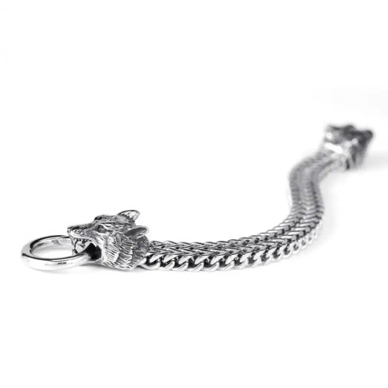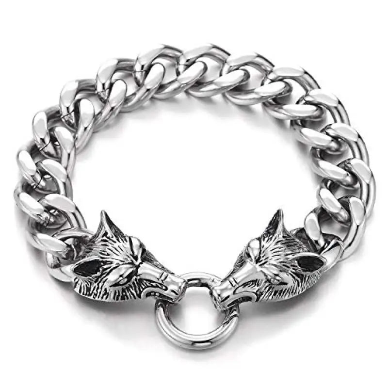 Stainless Steel Double Wolf Head Bracelet for Men Retro Punk Mesh Chain Animal Bracelet Hip Hop Rock Party Nordic Jewelry
