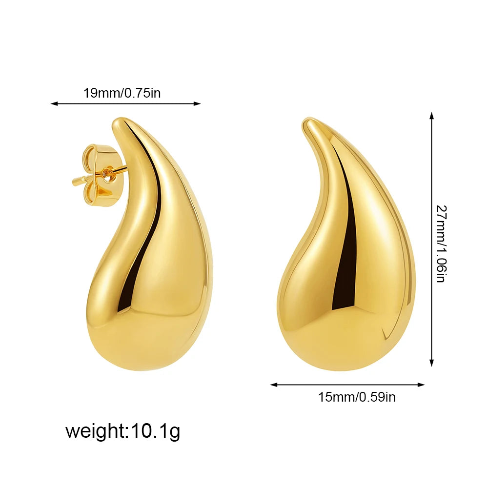 Stainless Steel Gold Plated Tear Drop Earrings Dupes for Women Lightweight Smooth Metal Waterdrop Hoop Earrings Trendy Jewelry
