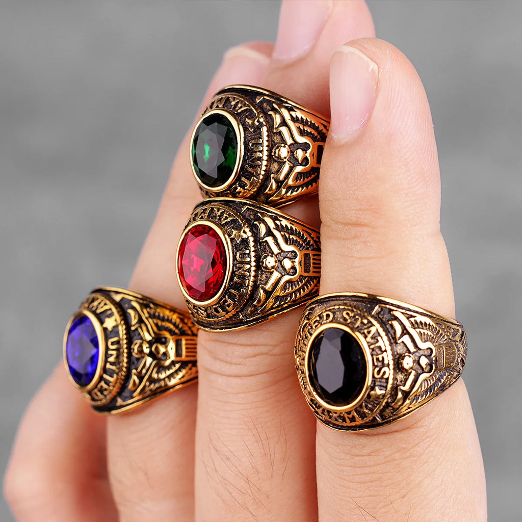 Stainless Steel Men Rings Rhinestone United States Army Punk Hip Hop for Biker Male Boyfriend Jewelry Creativity Gift Wholesale