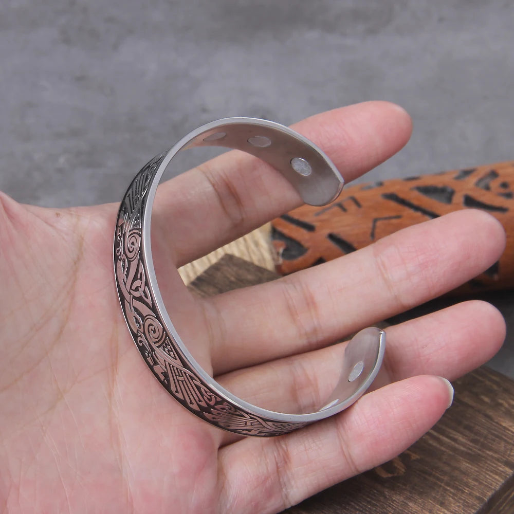Stainless Steel Men's Handmade Nordic Raven Bangle Viking Never Fade with wooden box as gift