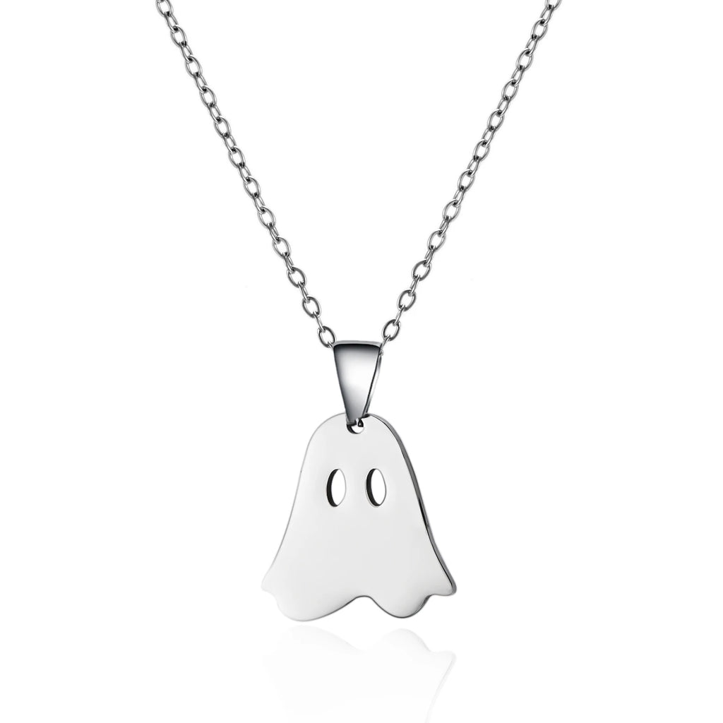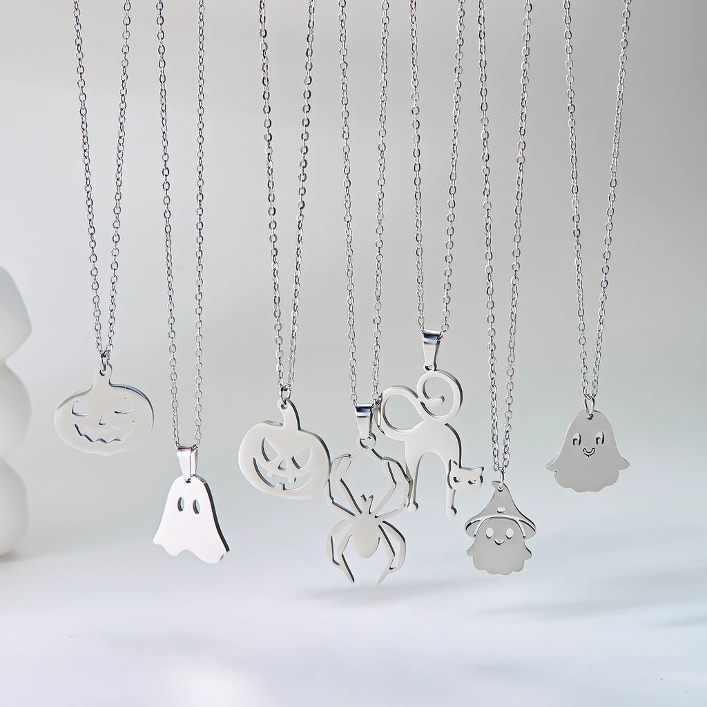 Stainless Steel Simple Personalized Ghost Pendant Necklace For Women Men Funny Pumpkin Clavicle Choker Halloween Party Jewelry