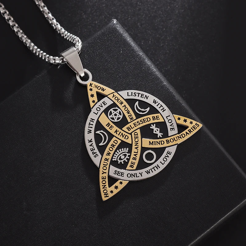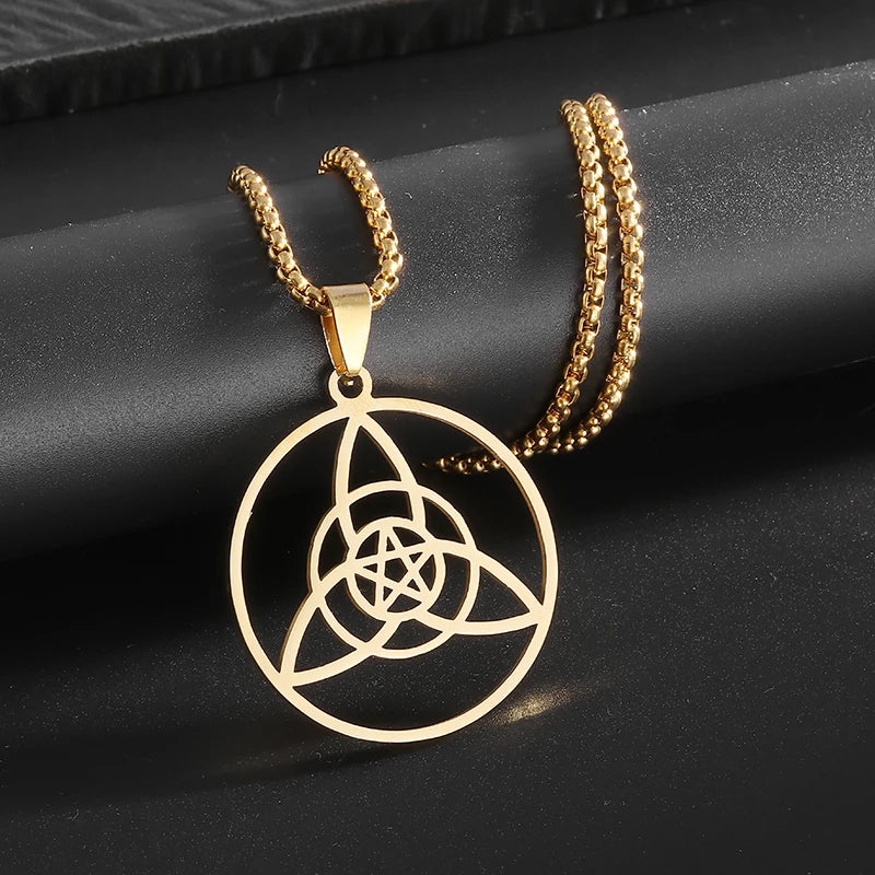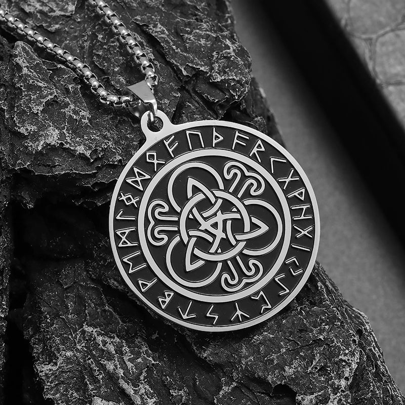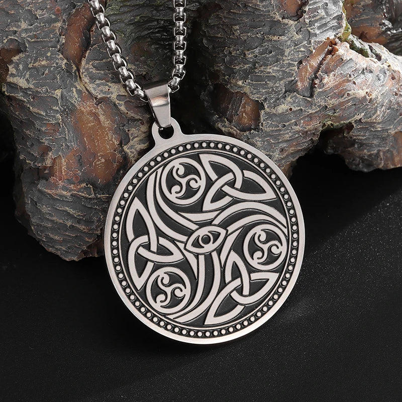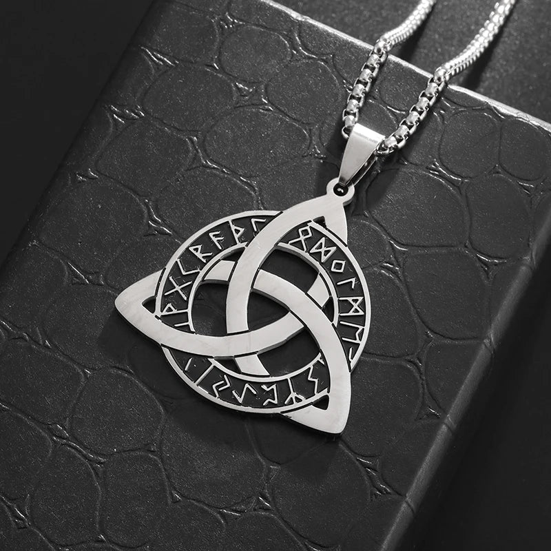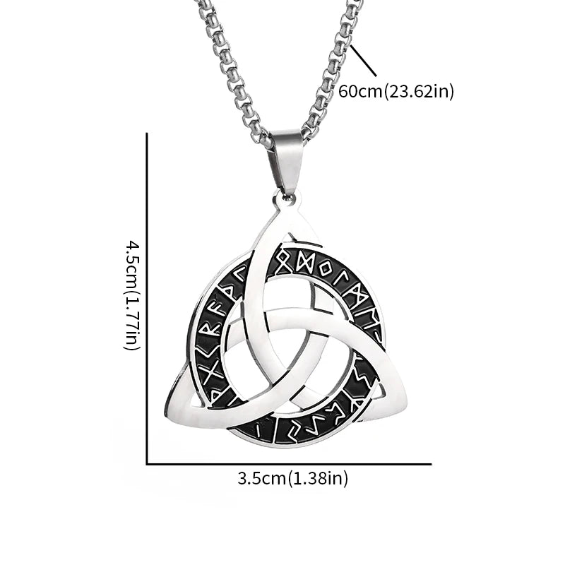 Stainless Steel Trinity Celtic Knot Nordic Rune Pendant Necklace Retro Ethnic Style Irish Knot Lucky Amulet Jewelry for Men