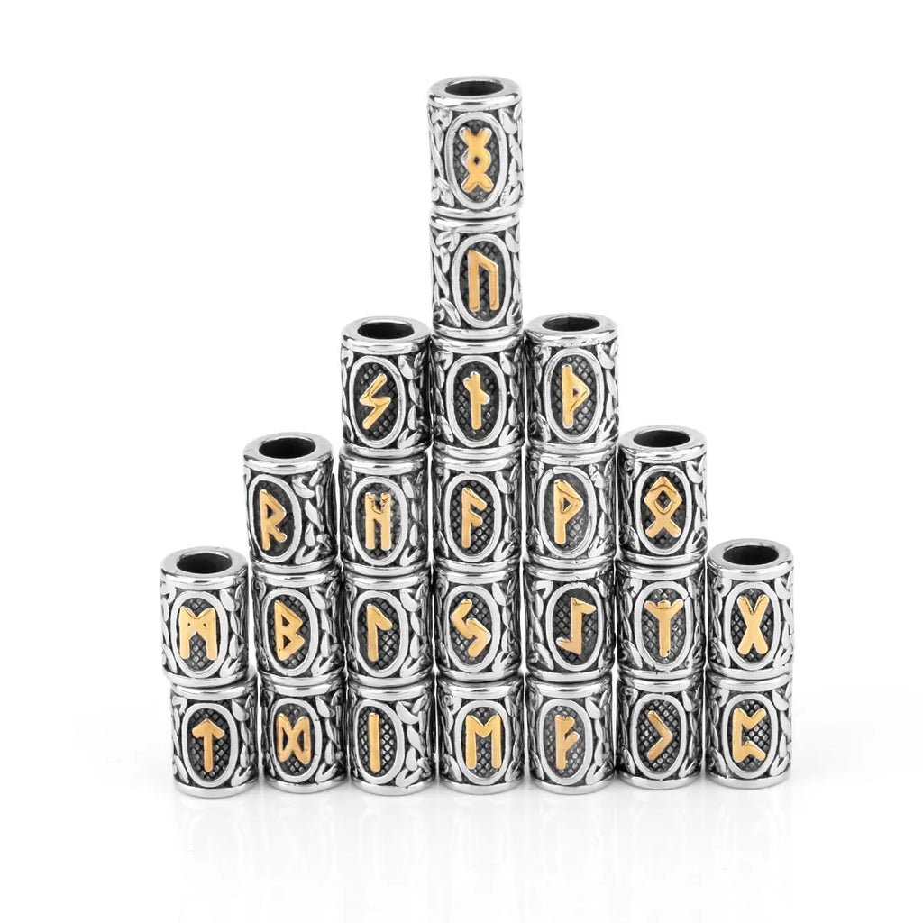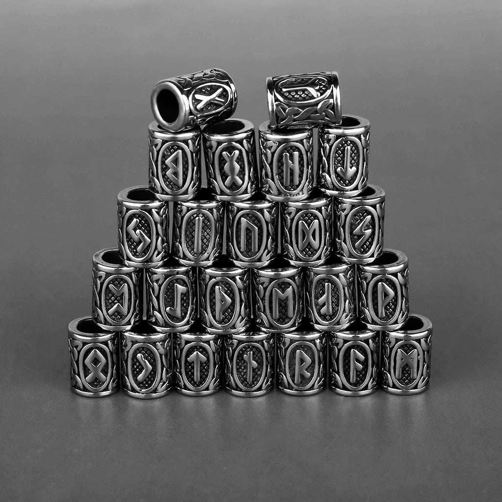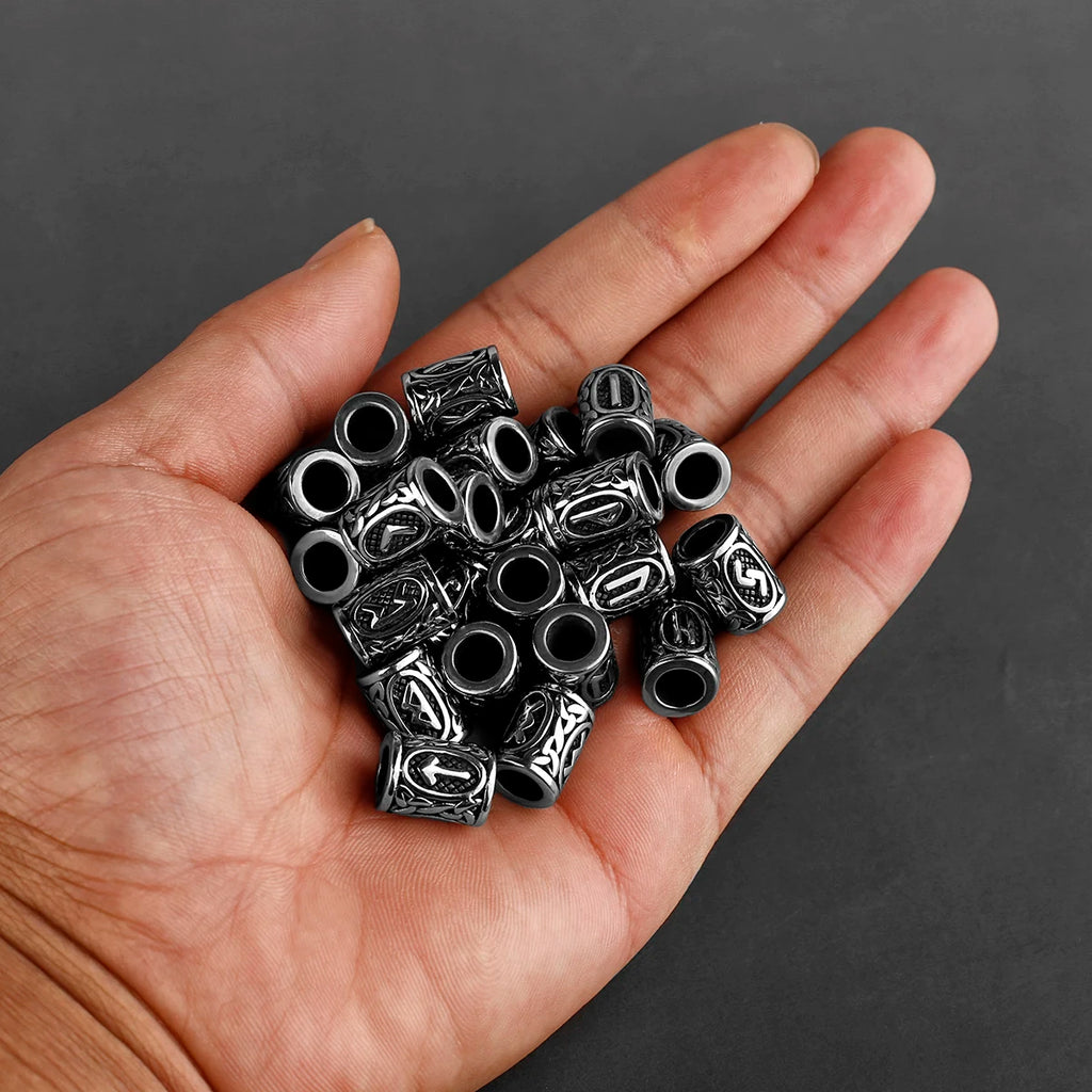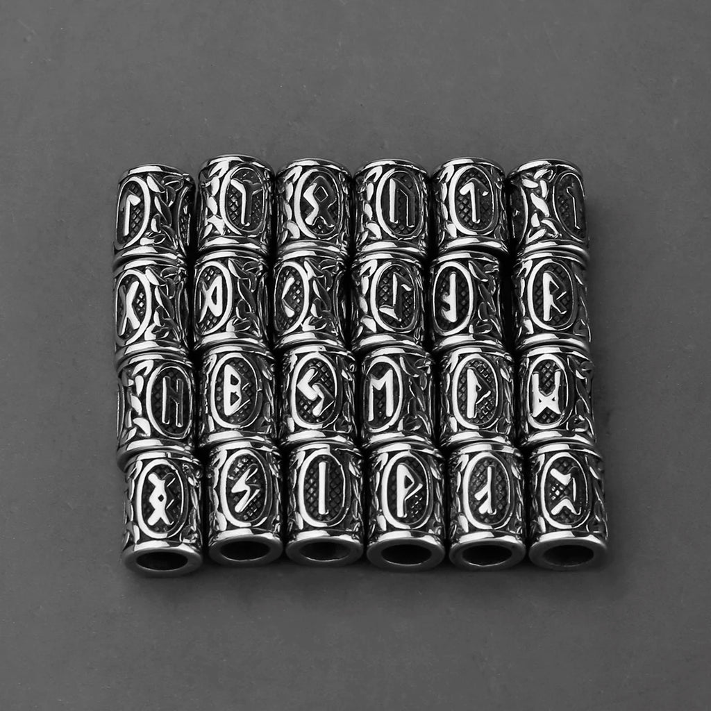 Stainless Steel Viking Rune Beads 6mm Big Hole Futhark Hair Beard Bead Bracelet Small Ornament Making Accessories Wholesale