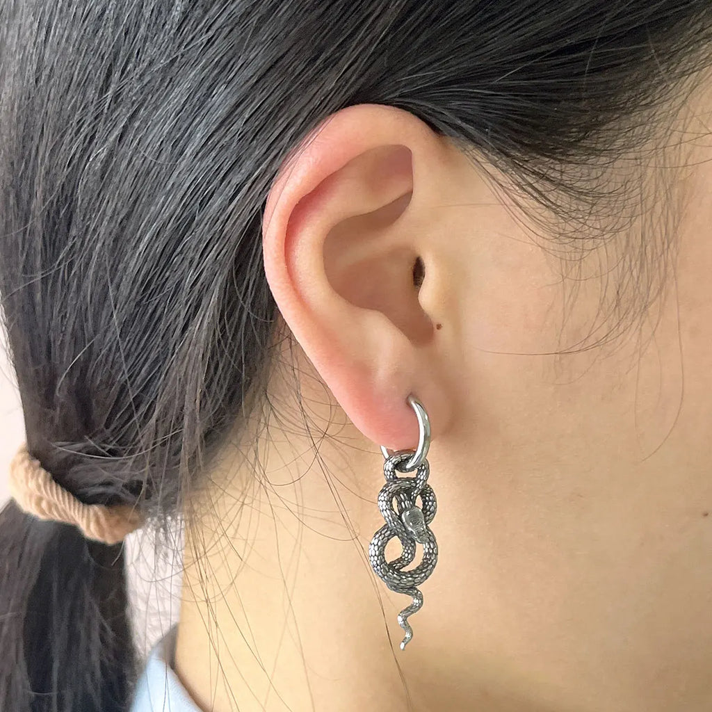 Stainless Steel Vintage Twisted Snake Fashion Pierced Earrings Men Rock Hip Hop Boys Girls Accessories Charms Jewelry Wholesale