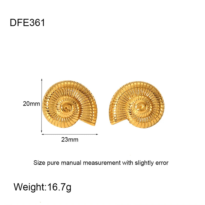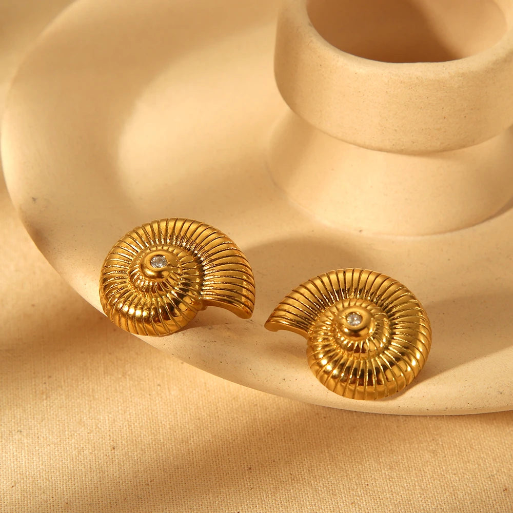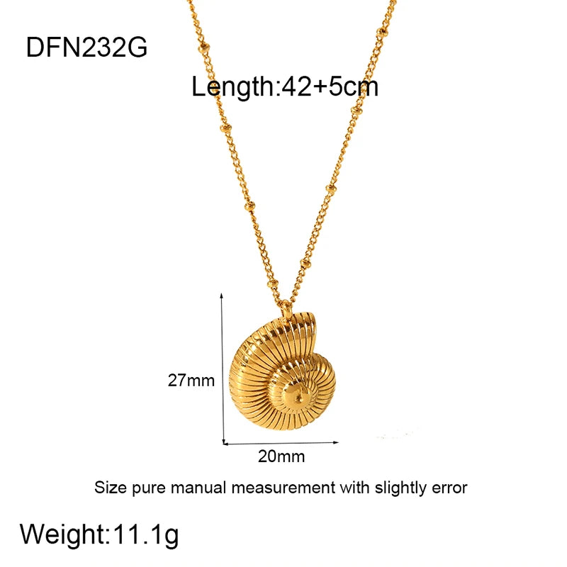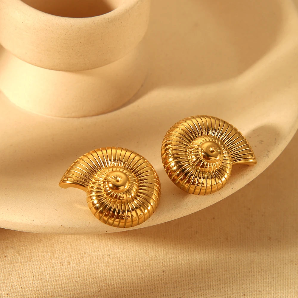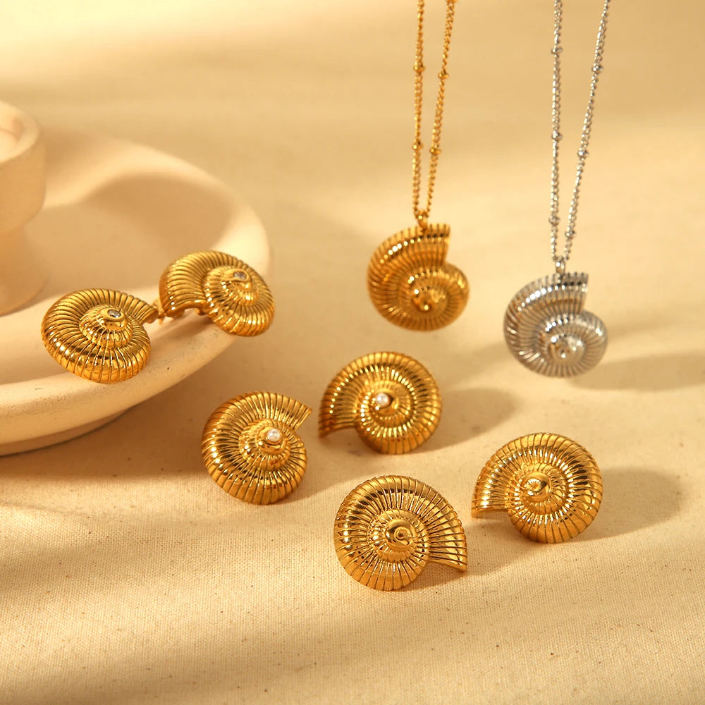 Summer Conch Shaped Geometric Texture Stud Earrings Necklace for Women Waterproof 18K Gold Plated Stainless Steel Jewelry Gift