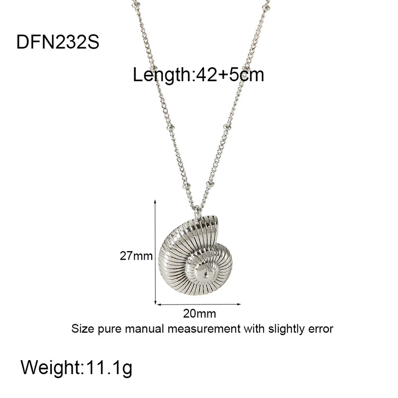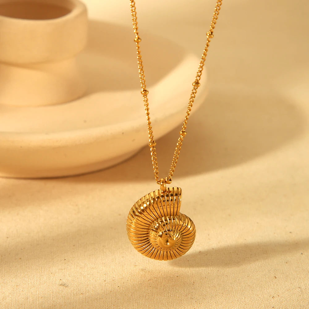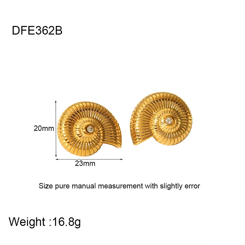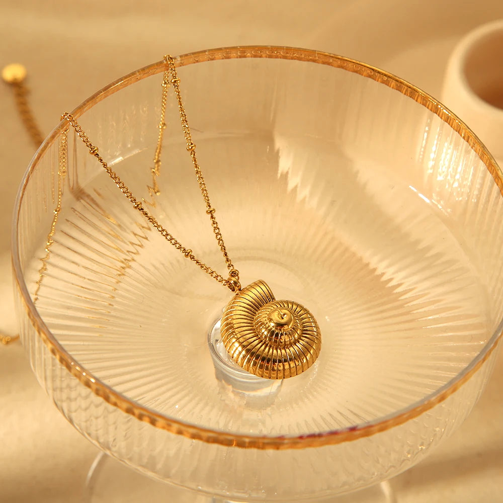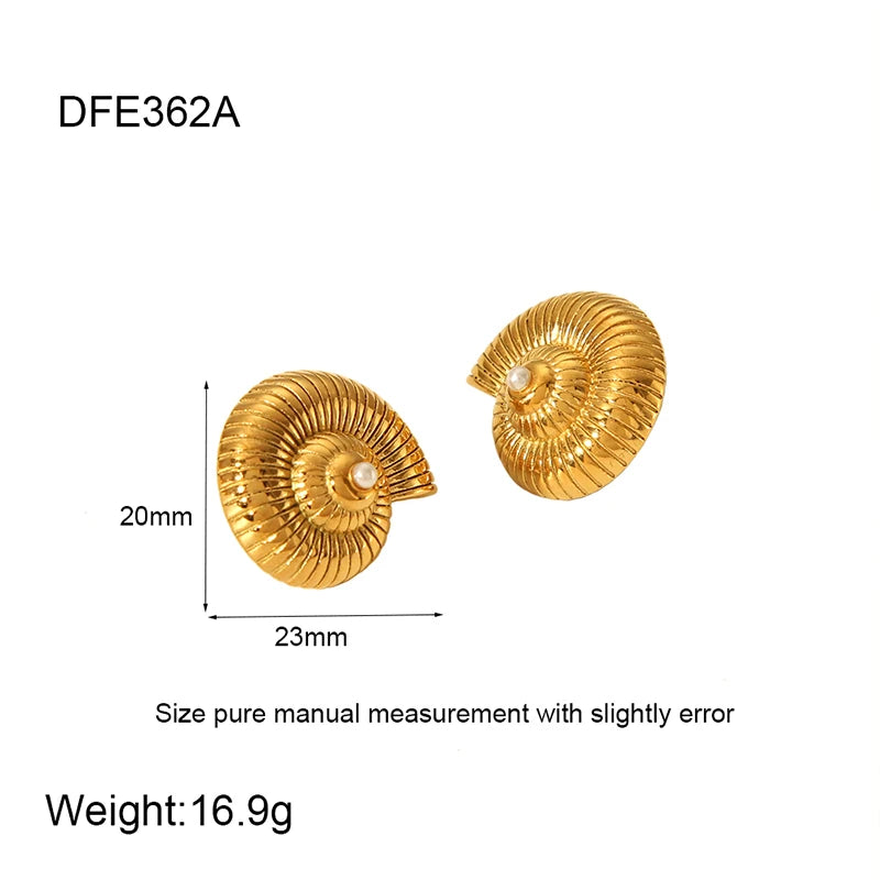 Summer Conch Shaped Geometric Texture Stud Earrings Necklace for Women Waterproof 18K Gold Plated Stainless Steel Jewelry Gift
