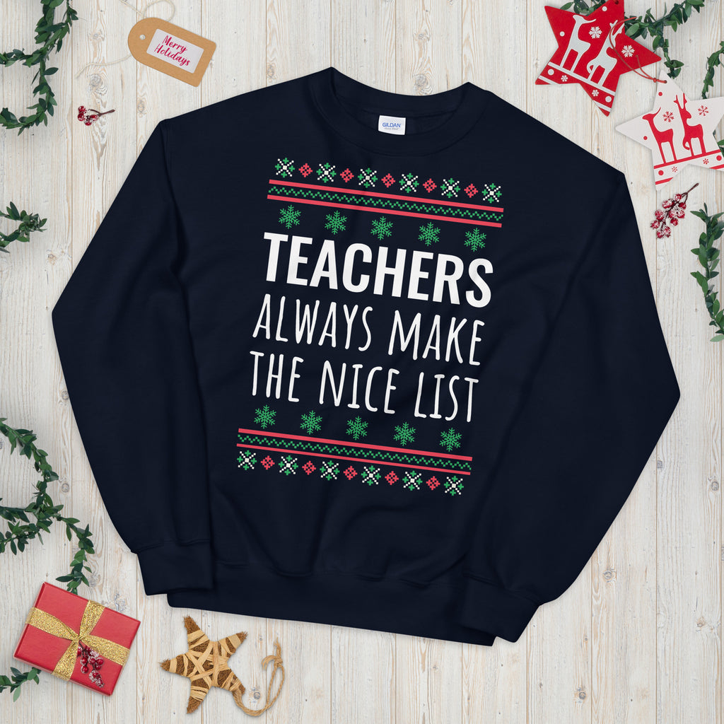 Teacher Christmas Sweatshirt, Teachers Always Make The Nice List, Teacher Sweatshirt, Teacher Ugly Sweater, Teacher Christmas Sweater