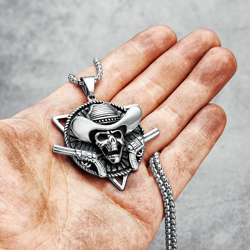 Vintage Men Necklace Retro Skull Cowboy Pendant Chain Rock Punk Rap for Biker Rider Male 316L Stainless Steel Jewelry Best Gift