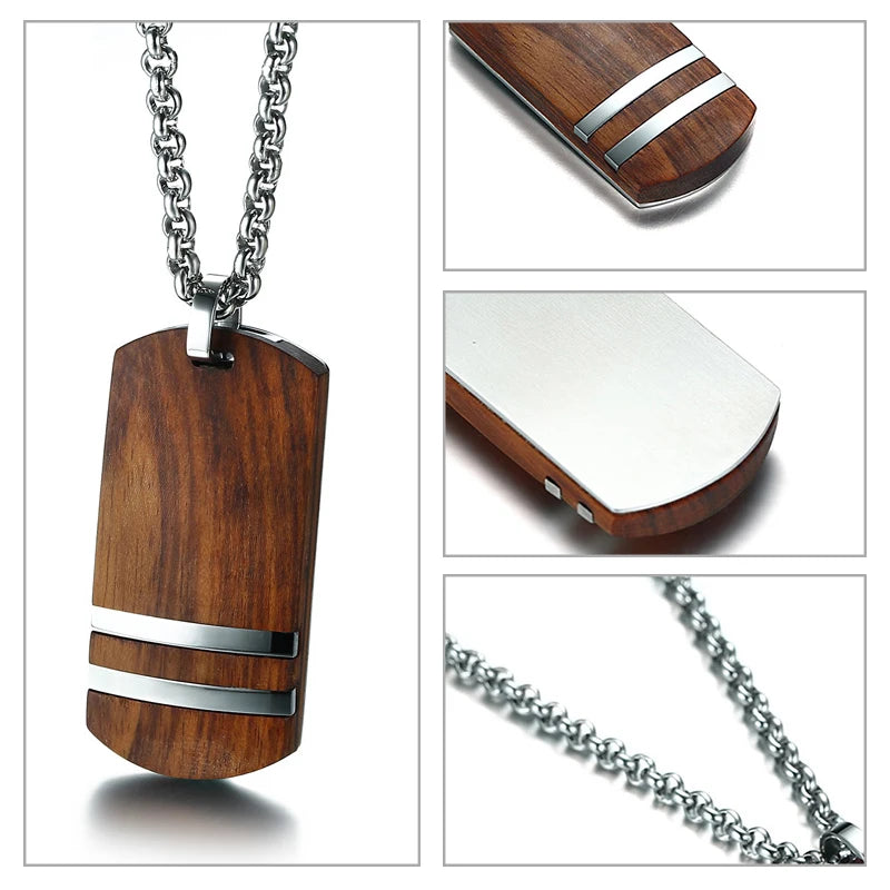 Vnox Top Rosewood Men Necklace Unique Qualified Wooden Pendants & Necklaces Stainless Steel Jewelry Adjustable Chain 22-24"