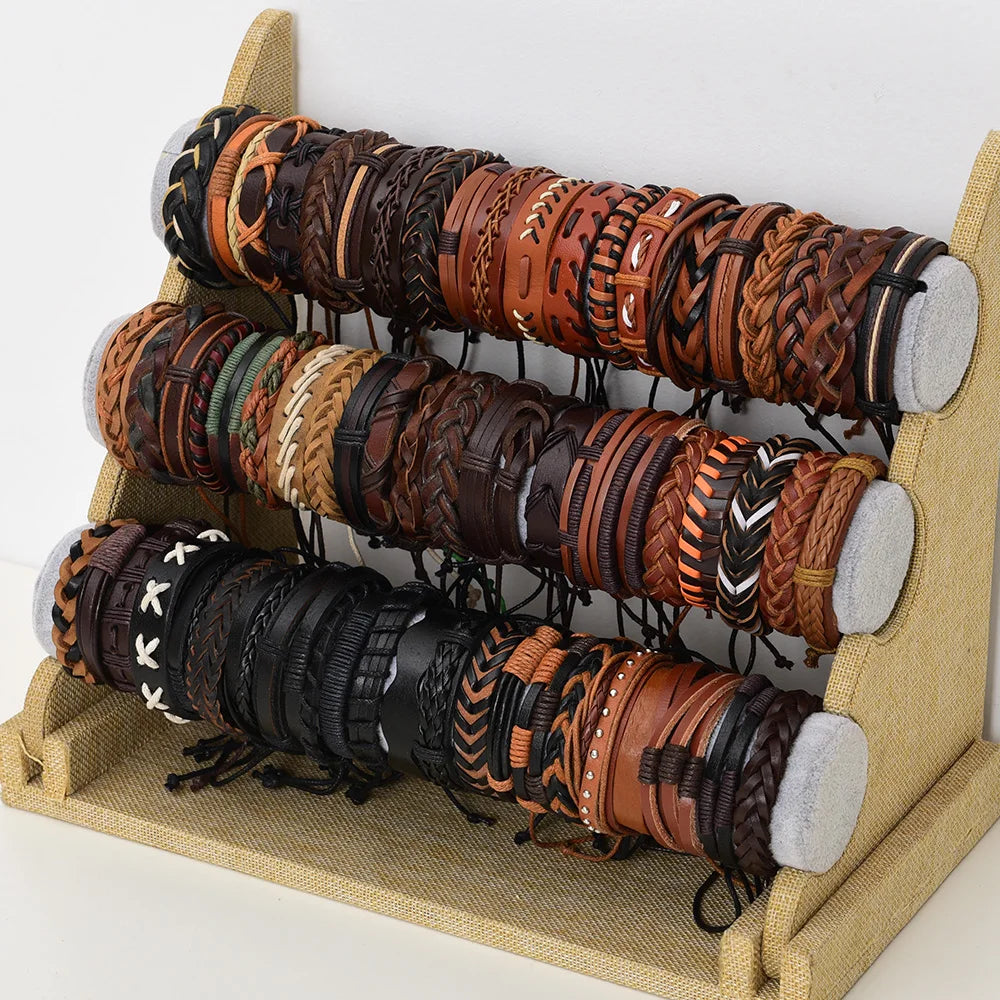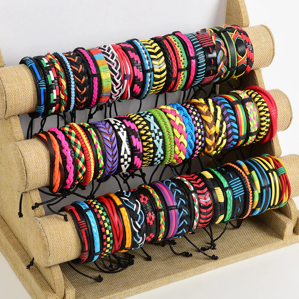 Wholesale Bulk 36PCS/Lot Leather Cuff Bracelets For Men's Women's Jewelry Party Gifts Mix Styles Size Adjustable