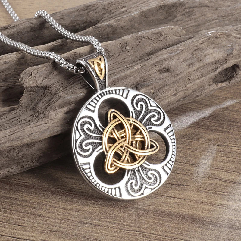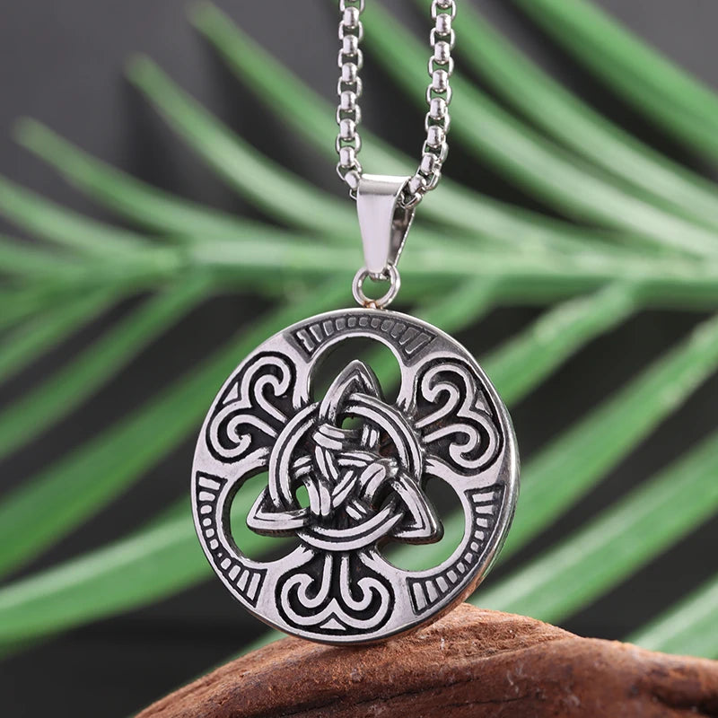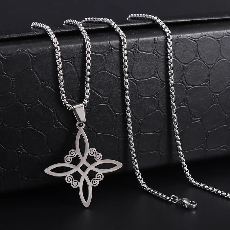 Witch Knot Necklace Celtic Knot Pendant Stainless Steel Amulet Triskelion Ankh Cross Pentagon Jewelry Birthday Gift for Women
