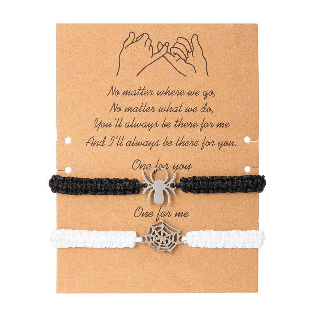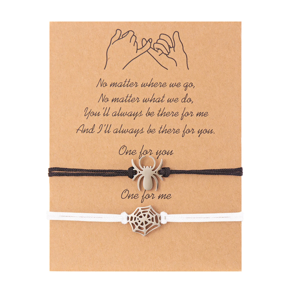 2pcs/Set Romantic Spider Web Couple Bracelet For Women Men Handmade Braided Rope Wish Card Halloween Friendship Jewelry Gifts