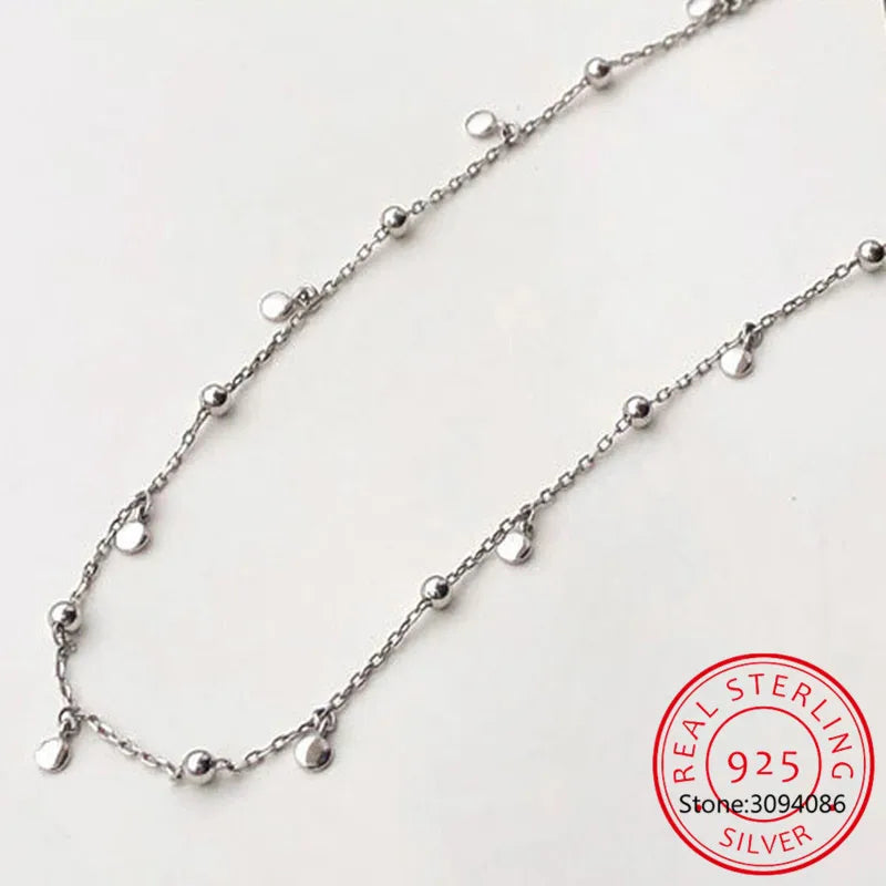 925 Sterling Silver Delicate Jewelry Round Bead Discs Choker Necklace for Women Party Clavicle Chain Necklace Wholesale S-N695