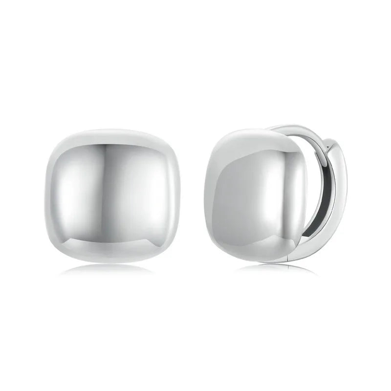 BISAER Real 925 Sterling Silver Chunky Square Hoop Earrings Metal Hypoallergenic Earrings 18K Gold-Plated for Women Fine Jewelry