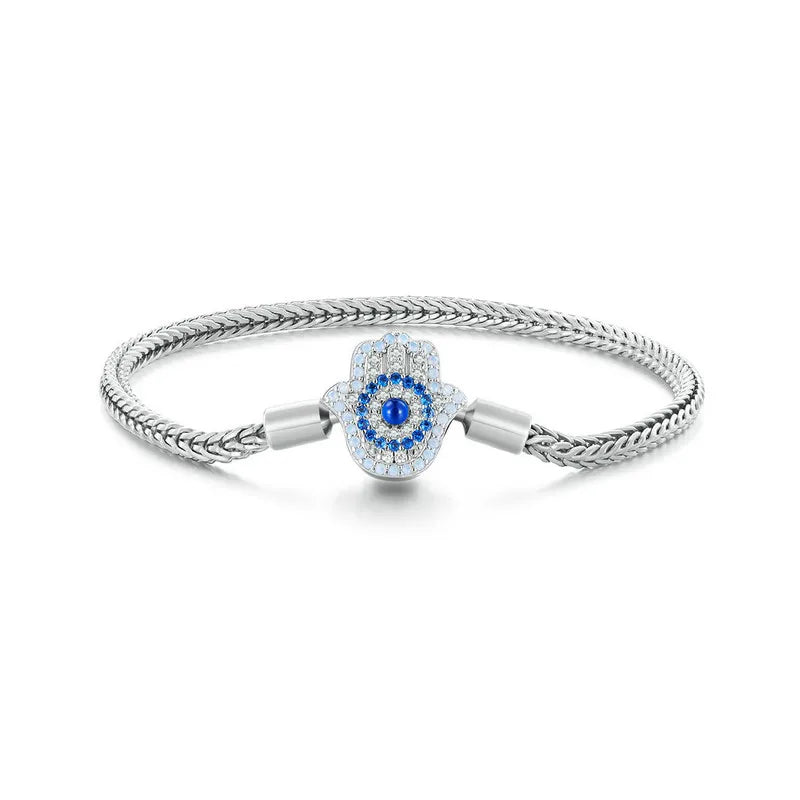 BISAER Real 925 Sterling Silver Fatima Guardian Angel Basic Bracelet Plated platinum for Women Charms Beads DIY Fine Jewelry