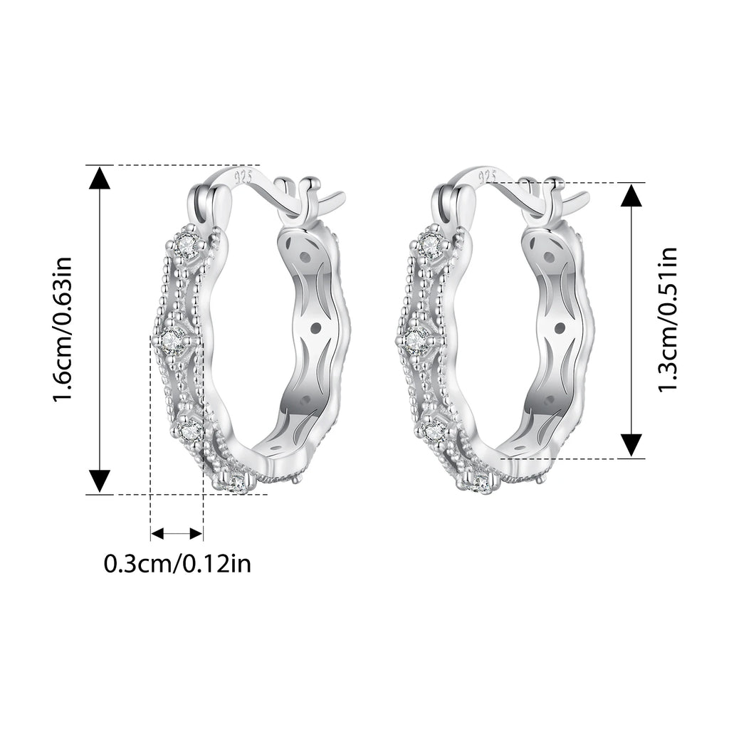 BISAER Real 925 Sterling Silver Lace Sparkling Hoop Earring Round Circle Cubic Zirconia Stud Ear For Woman Party Fine Jewelry