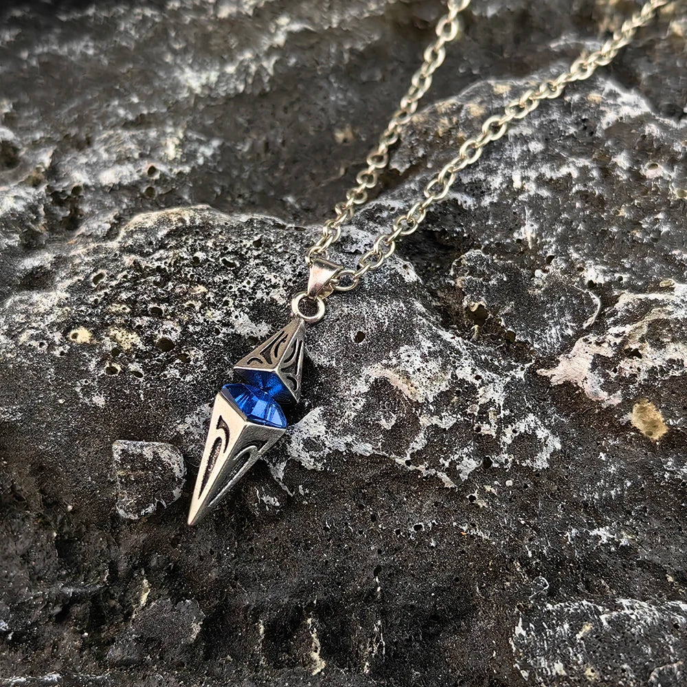 Chic Blue Stone Necklaces for Men Retro Hip Hop Alloy Geometric Pendant Collar,Valentine's Birthday Party Gift for Him