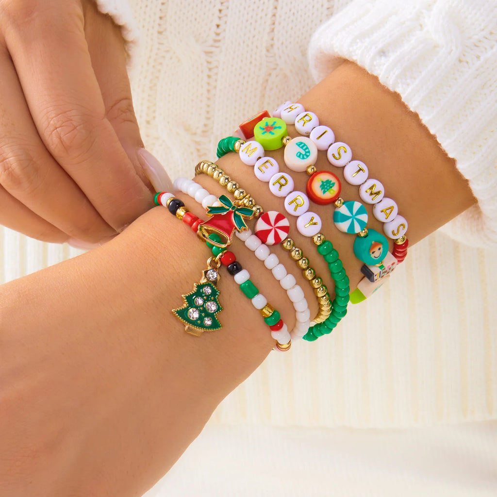 Christmas Series Bracelet Set For Women Santa Claus Snowman Xmas Tree Snowflake Crystal Beads Bracelets Party Charm Jewelry Gift