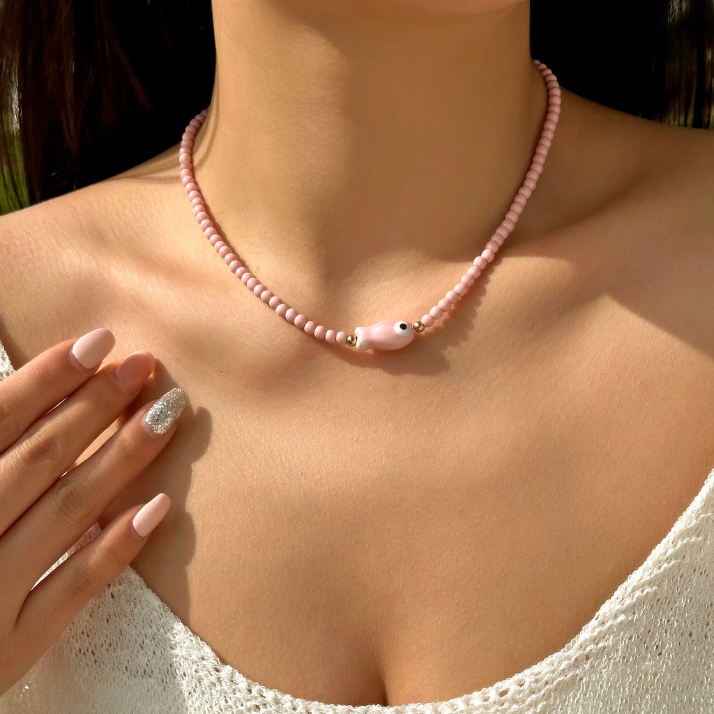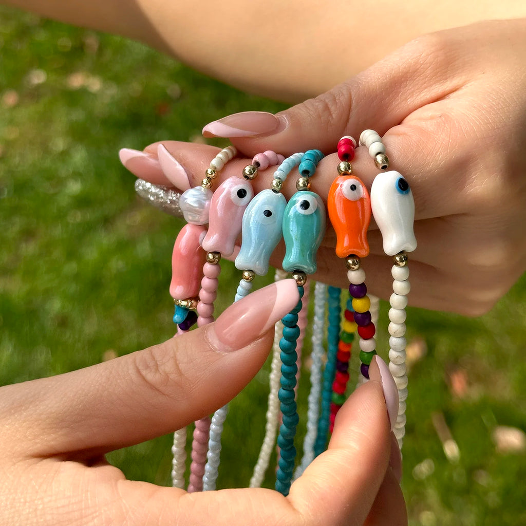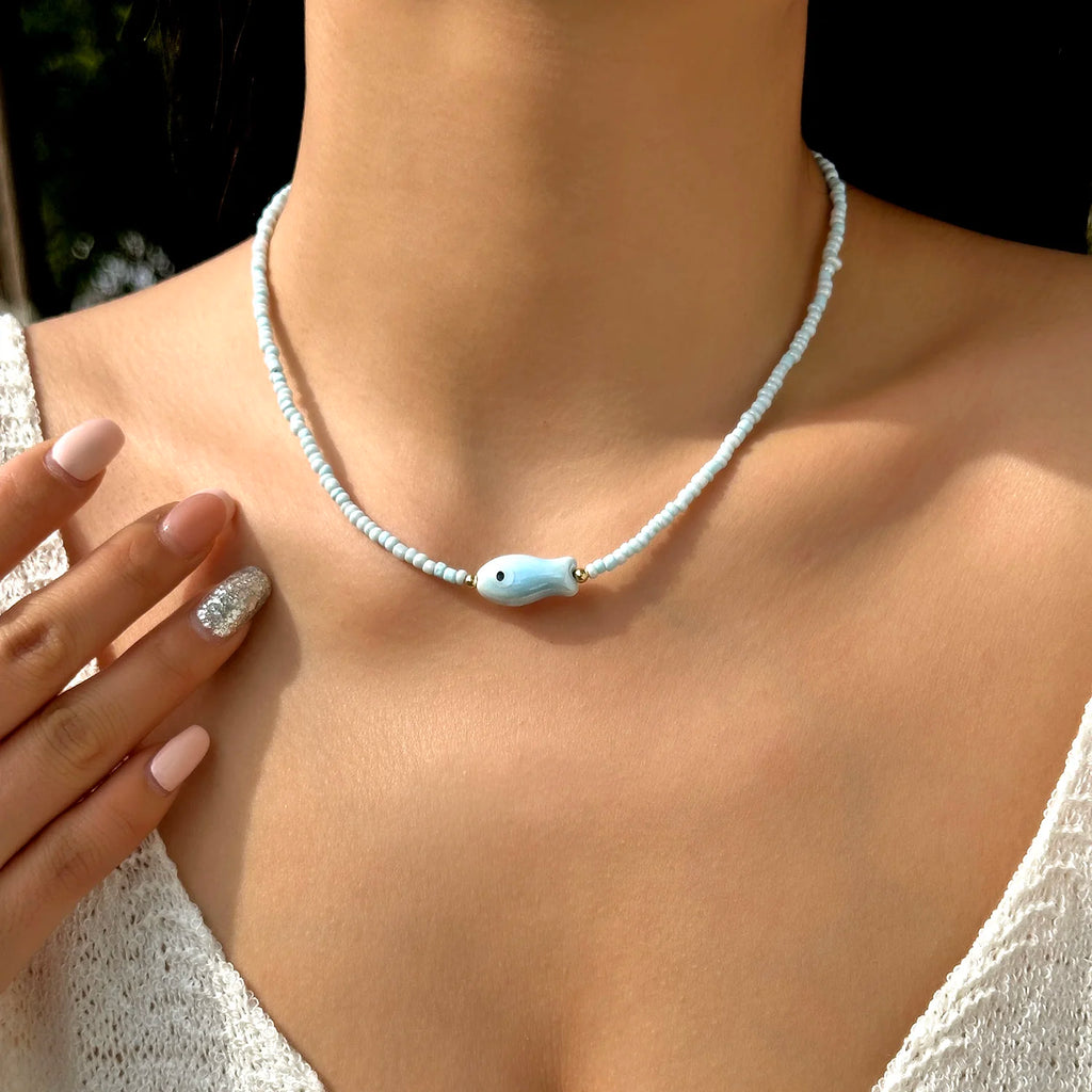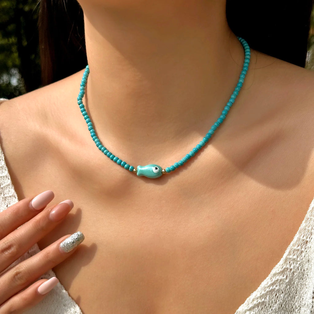 Colorful Ceramic Fish Beaded Necklace For Women Unisex Handmade Rice Beads Choker Beach Party Aesthetic Charm Jewelry Gifts