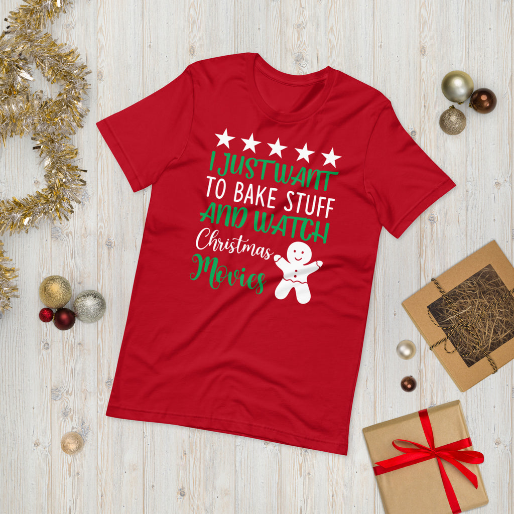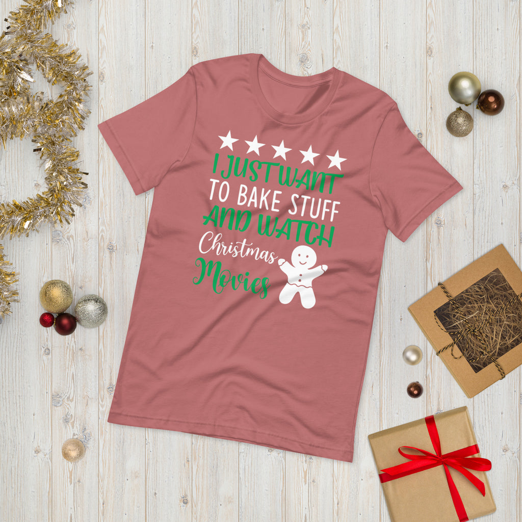I Just Want To Bake Stuff and Watch Christmas Movies Shirt, Baking Xmas Shirt, Baker Shirt, Christmas Shirt, Christmas Cookies, Movie Shirt