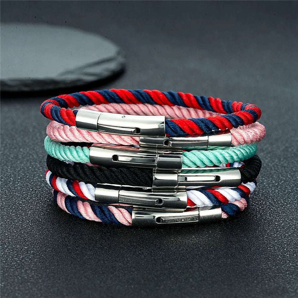 MKENDN Minimalist Braided Rope Bracelet Stainless Steel Snap Fastener Lucky Surfing Thread Bracelet Gift for Men Women Couple