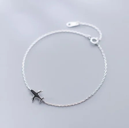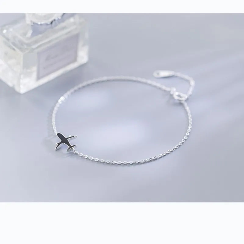 MKENDN New Fashion 925 Sterling Silver Travel Around World Plane Aircraft Charm Bracelet Adjustable For Women Gift Jewelry