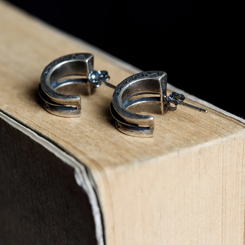 MKENDN Punk Style Jewelry S925 Silver Indian Arabesque Totem Ear Stud For Men And Women Anti-Allergy Stud Earrings Femme