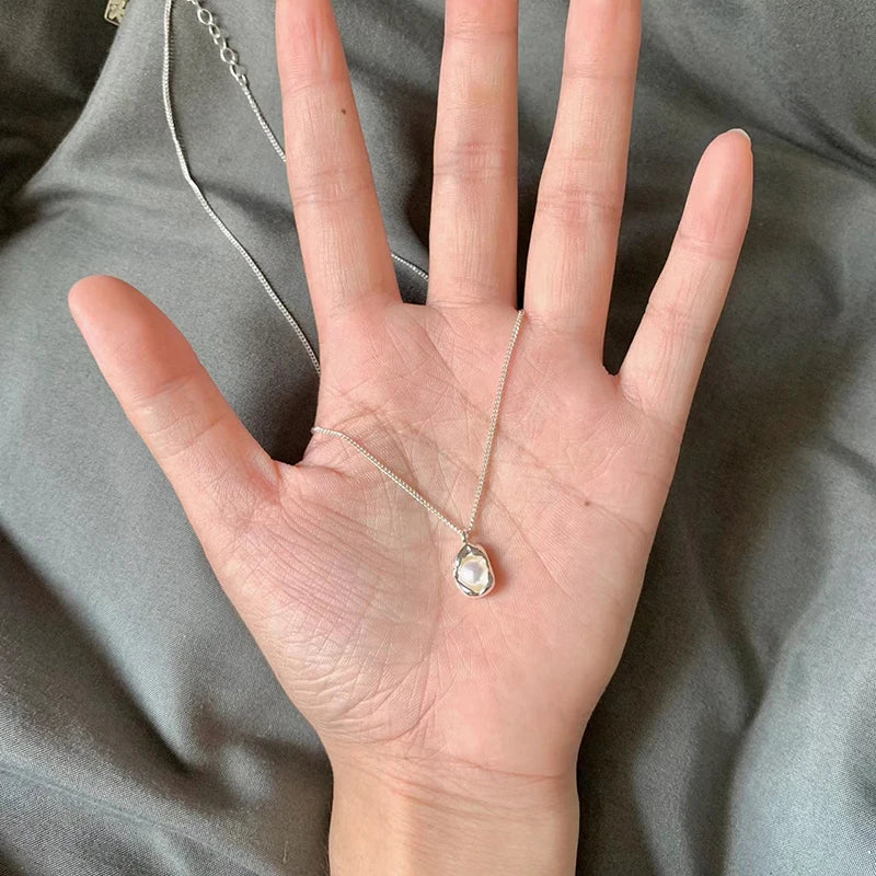 Popular 925 Sterling Silver Pearl Geometric Shape Necklace Simple Charm Ladies Pendant Choker Birthday Party Gift Fine Jewelry