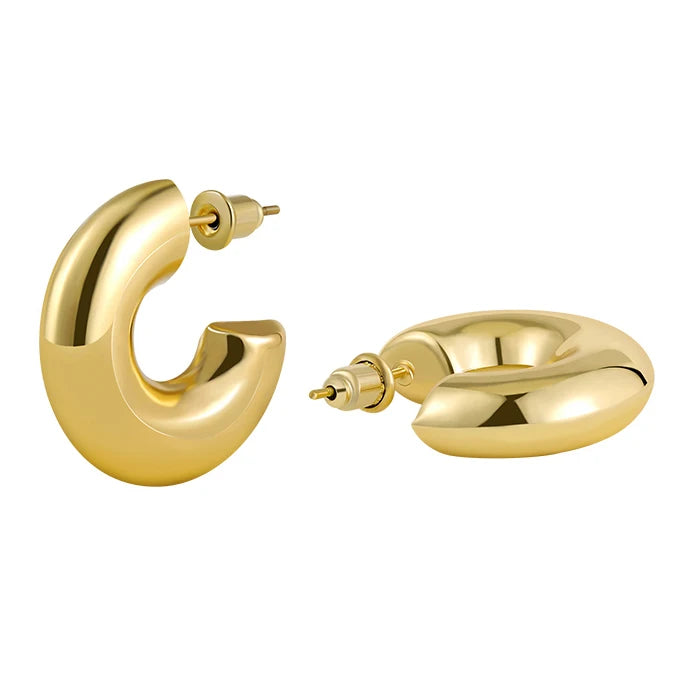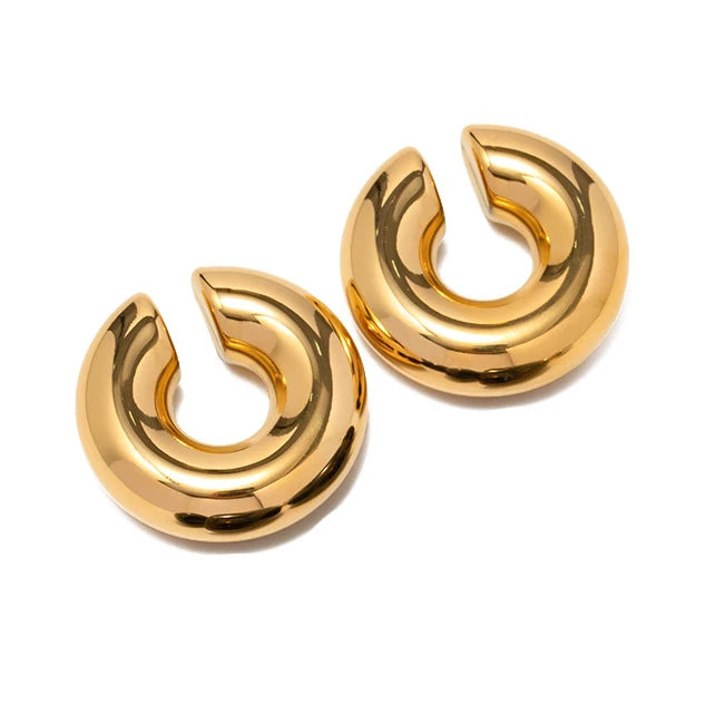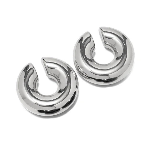 Punk Gold Plated Stainless Steel Chunky Ear Cuff Clip Earrings for Women Exaggerated Thick Round Circle Ear Clip Jewelry Gift