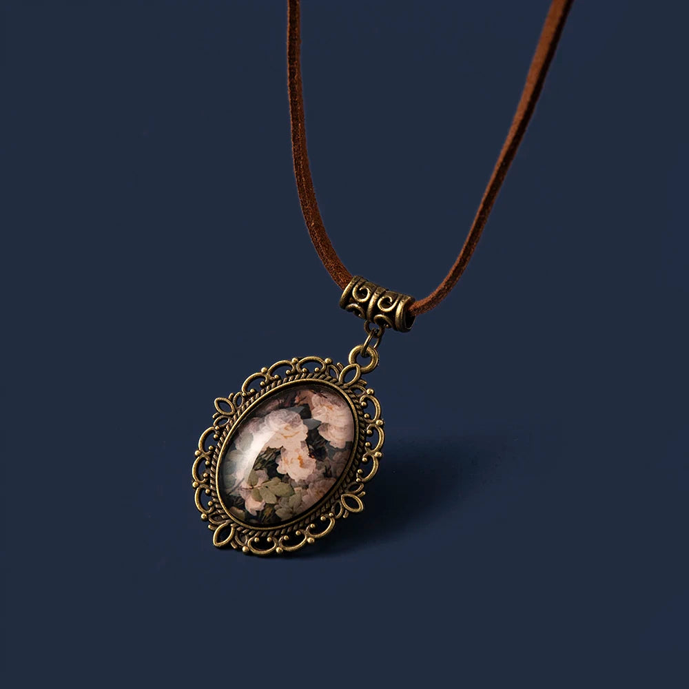Vintange White Rose Flowers time gem Pendant Necklace Leather Rope Chain Necklace Women Fashion Jewelry SX-25