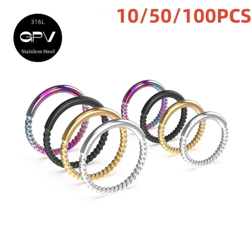 10/50/100PCS Stainless Steel Nose Ring Piercing Jewelry In Various Specifications
