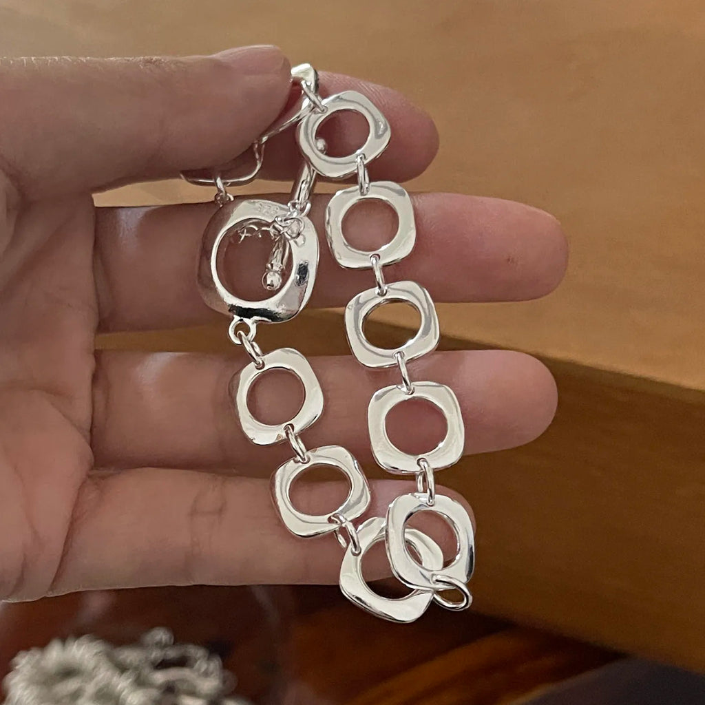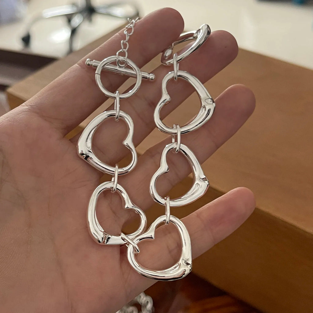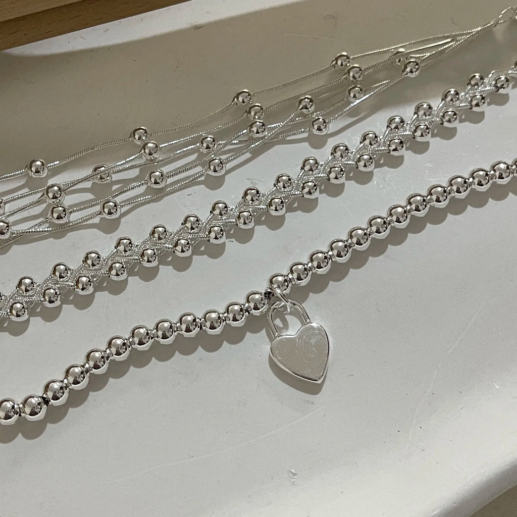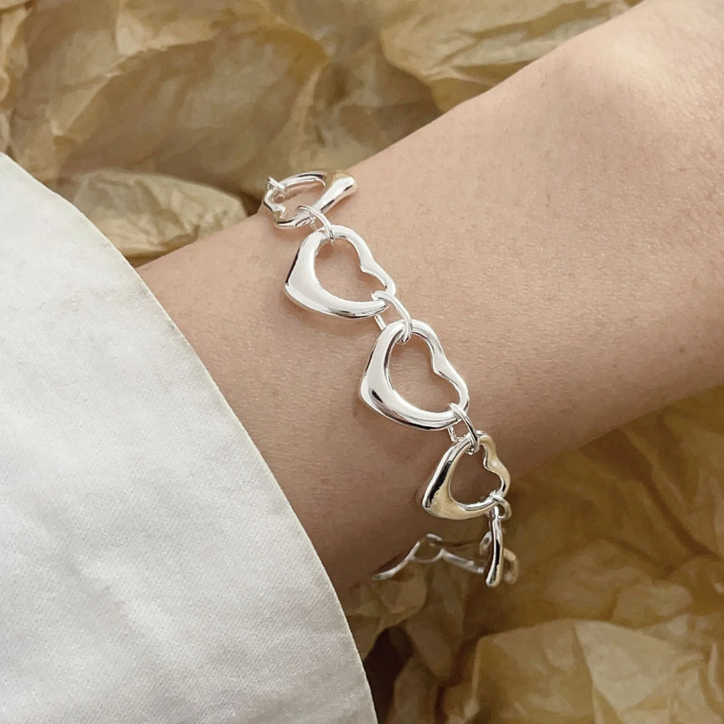 100% Solid 925 Sterling Silver Bracelet for Women Men Vintage Handmade Shinning Heart Bracelets Birthday Christmas Gift