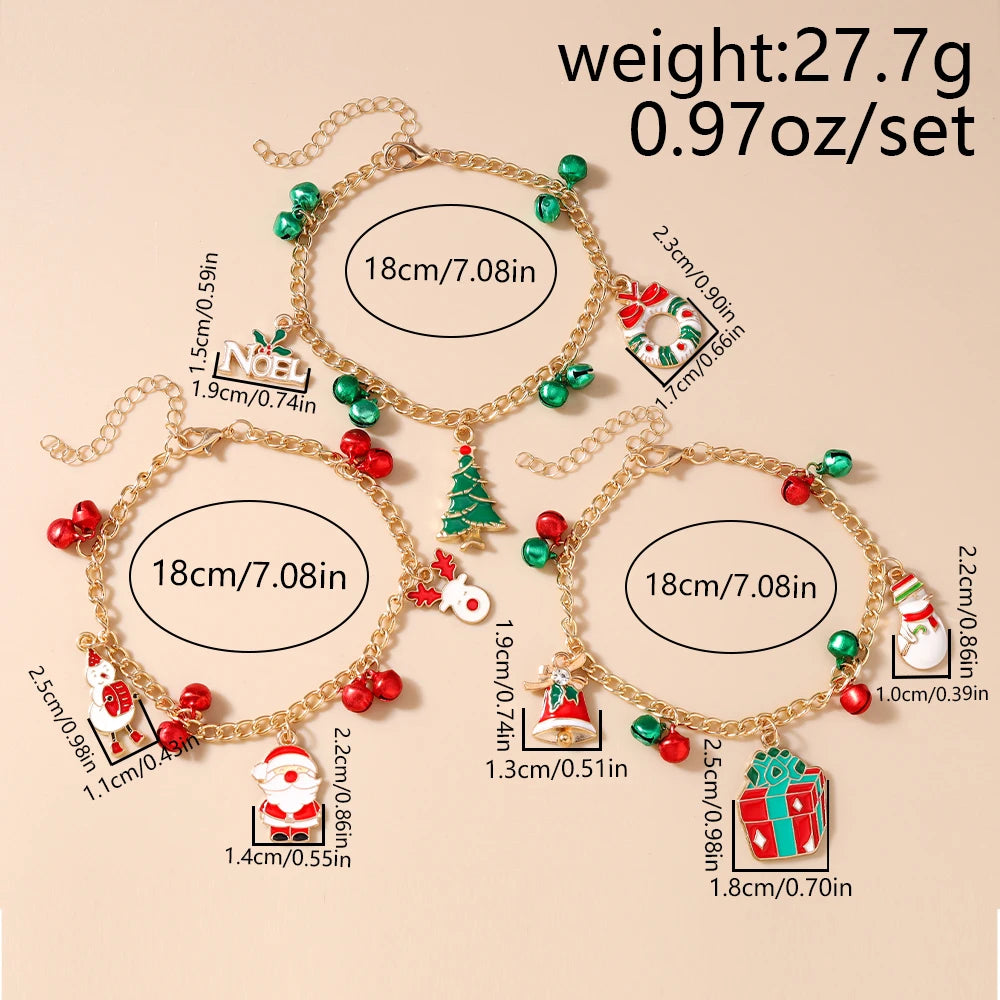 3pcs/set Fashion Christmas Bracelet Bells Santa Clause Snowman Bracelets Girls X'mas New Year Jewelry Gift