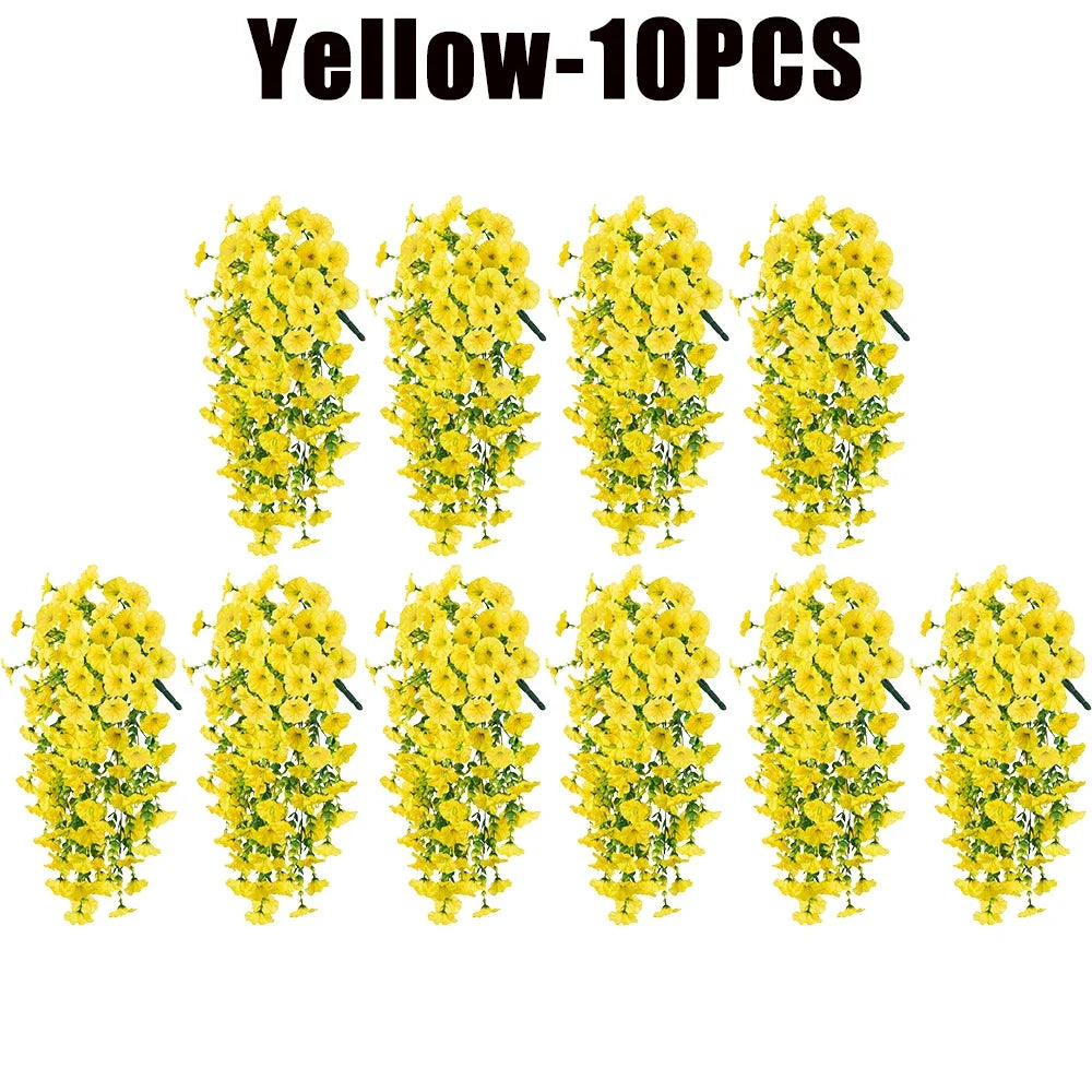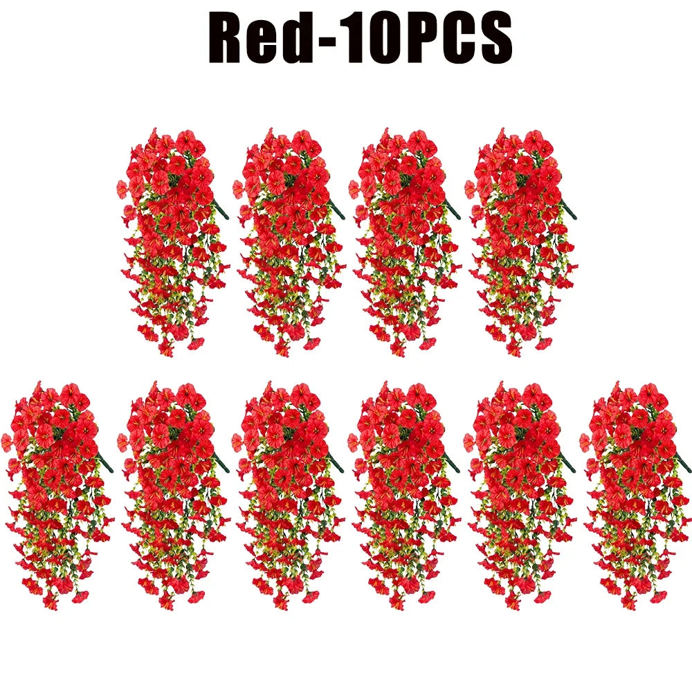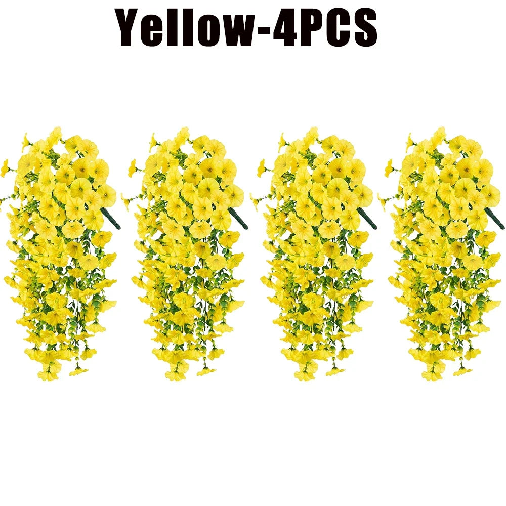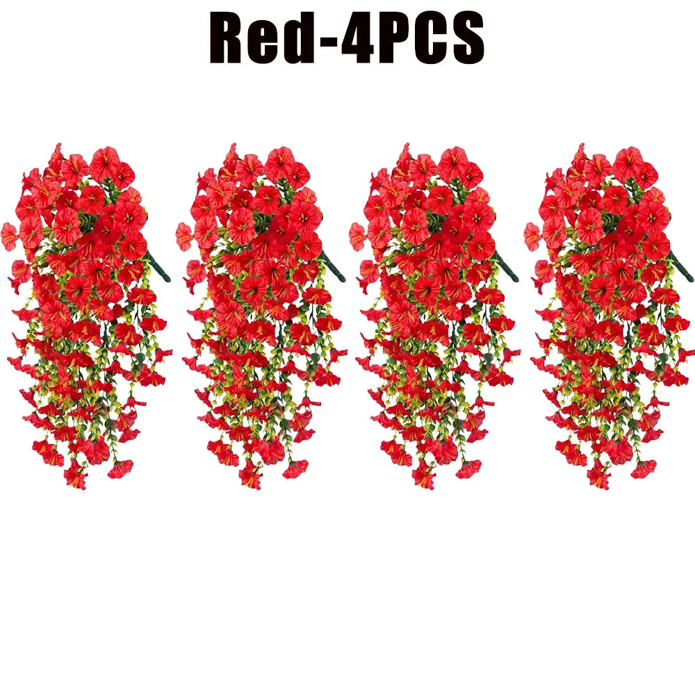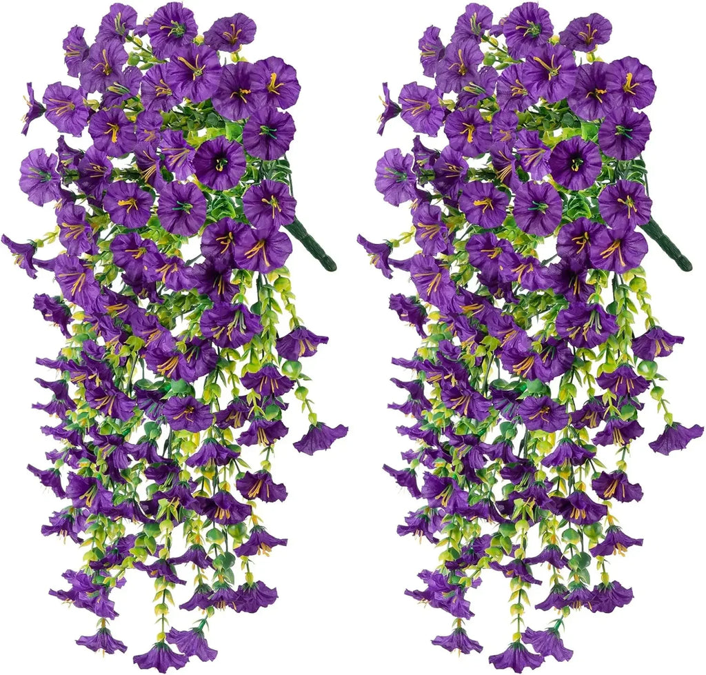 Artificial Hanging Flowers Plants Silk Morning Glory Flowers with Eucalyptus Leaves for Home Garden Porch Window Decoration