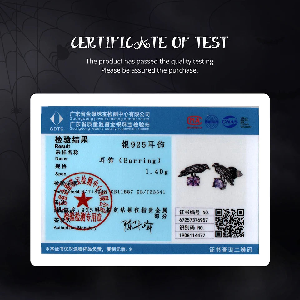 BAMOER 925 Sterling Silver Black Enamel Ghost Stud Earrings for Halloween Gift, Punk Style Purple Zircons Crow Piercing Earrings
