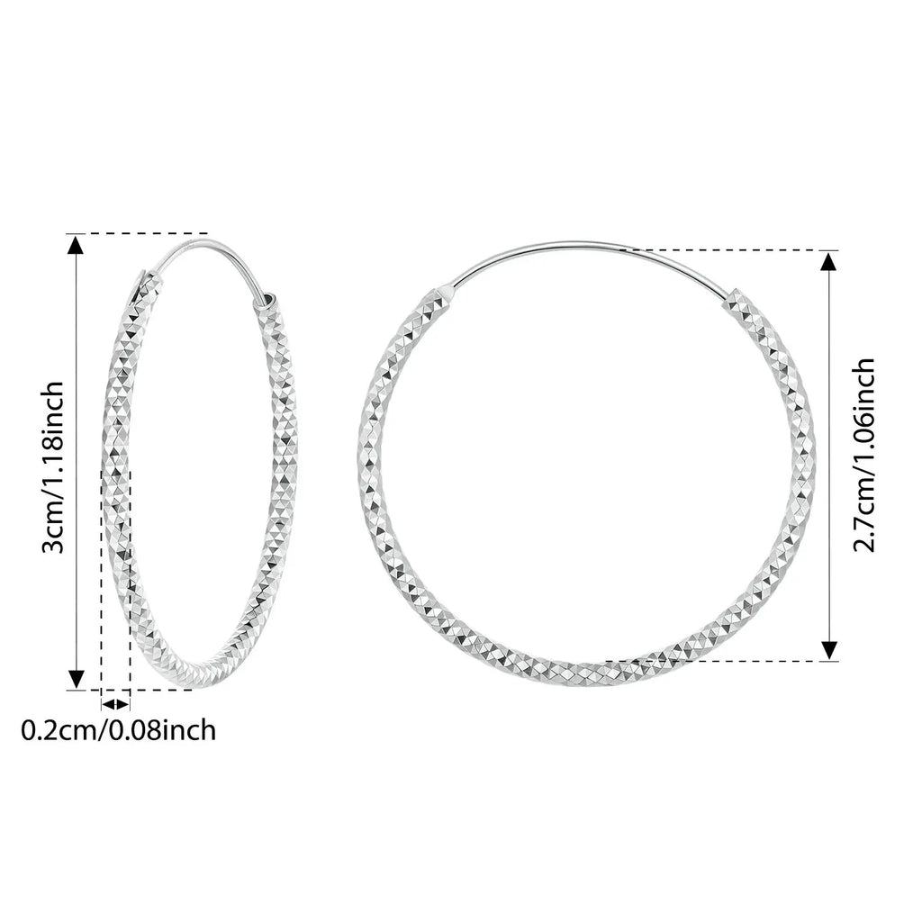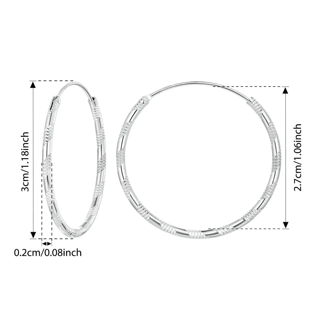 BAMOER 925 Sterling Silver Carved Floral Silver Large Hoop Earrings, Geometric Round Ear Cuff for Women Punk Jewelry Gift