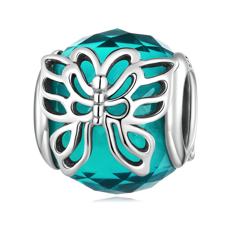 Bamoer 925 Sterling Silver Christma Charms Butterfly Beads CZ Pendant For Women Fit Original DIY Bracelet Necklace Jewelry