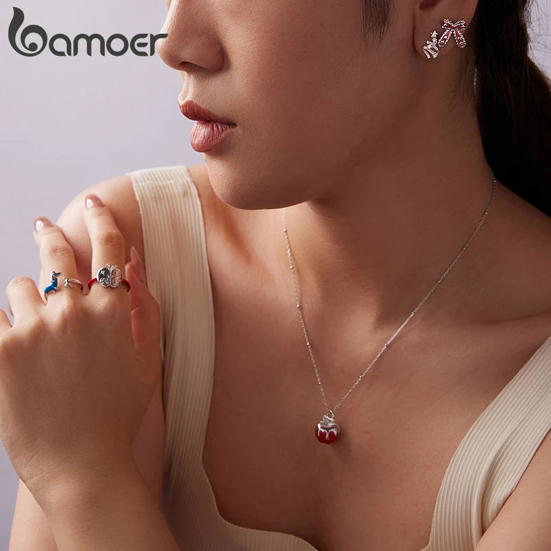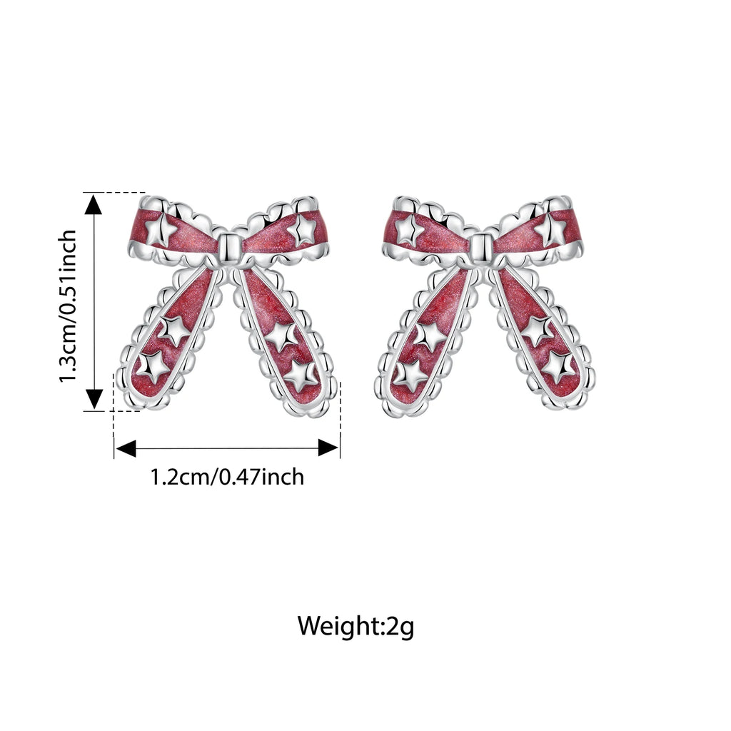 BAMOER 925 Sterling Silver Christmas Bow Stud Earrings, Enamel Stars Piercing Earrings Sweet Jewelry for Women Teen Xmas Gift