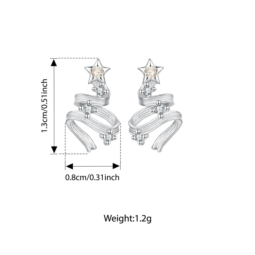 BAMOER 925 Sterling Silver Christmas Tree Stud Earrings, Curved Texture CZ Star Earrings for Women Teens Lovely Xmas Gift