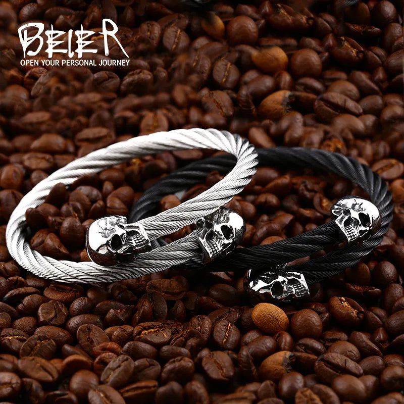 Beier new store 316L Stainless Steel Bangles high quality for women and men double skull PUNK Bangles fashion jewelry LLBRG-012G