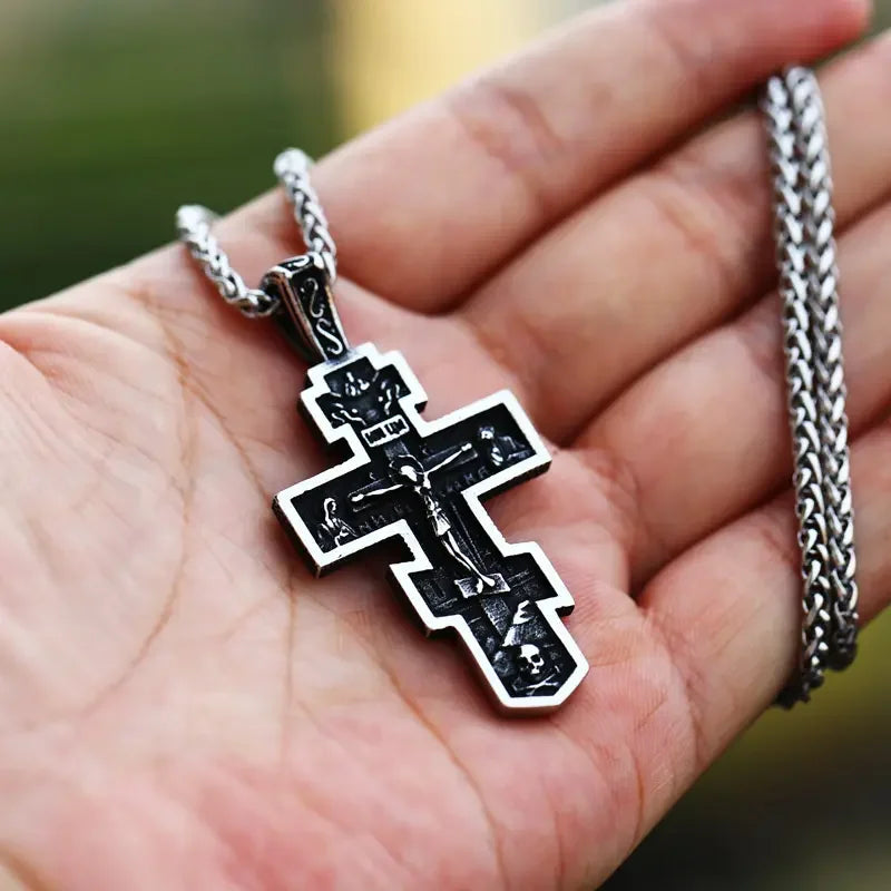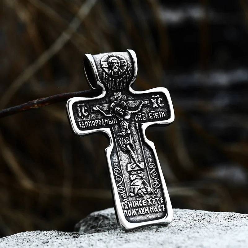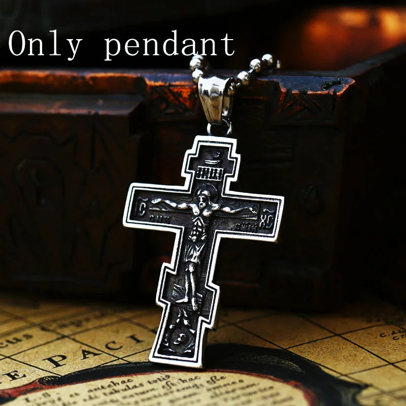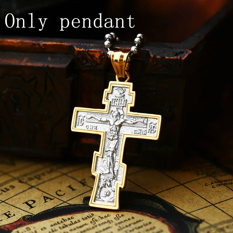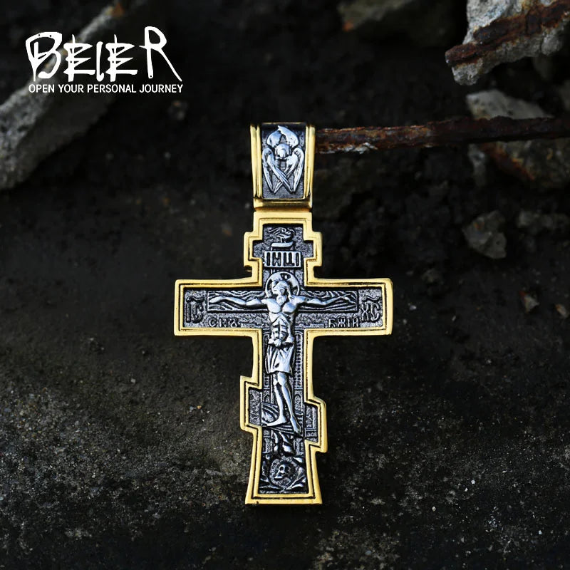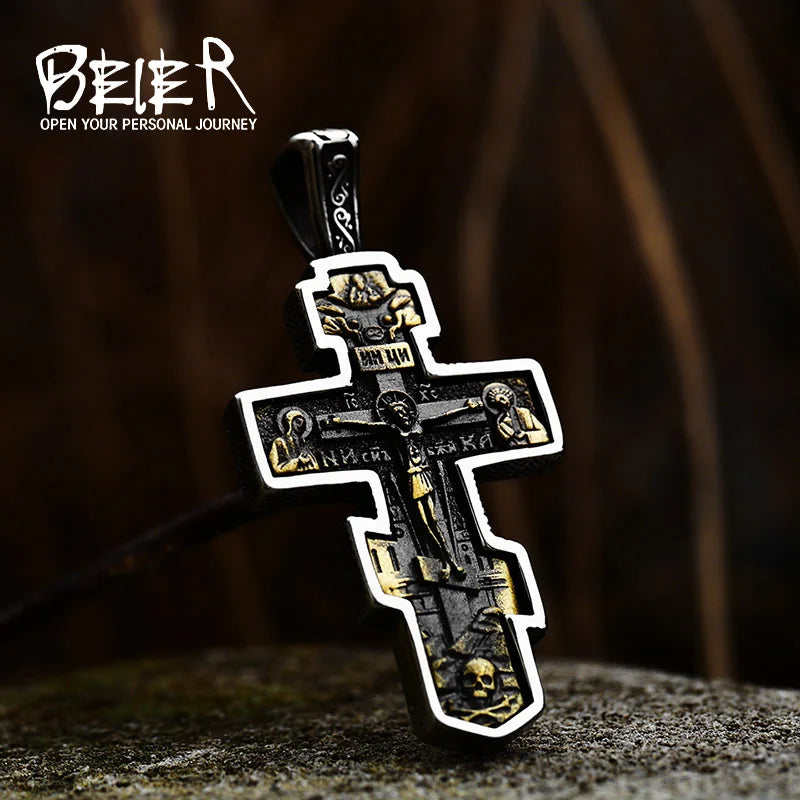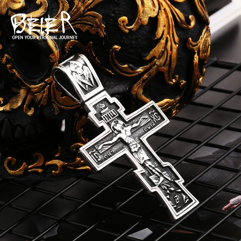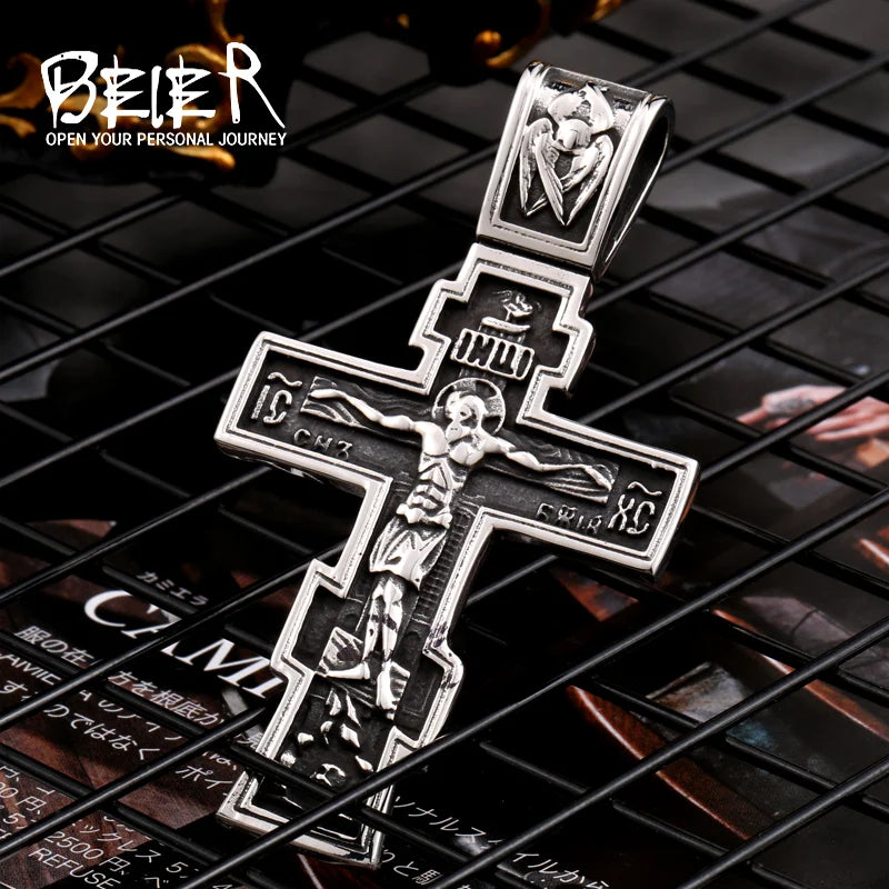 Beier Stainless Steel Jesus Cross Men's Crucifix Eastern Orthodox Pendant Chain Necklace Jewelry LLBP8-515P