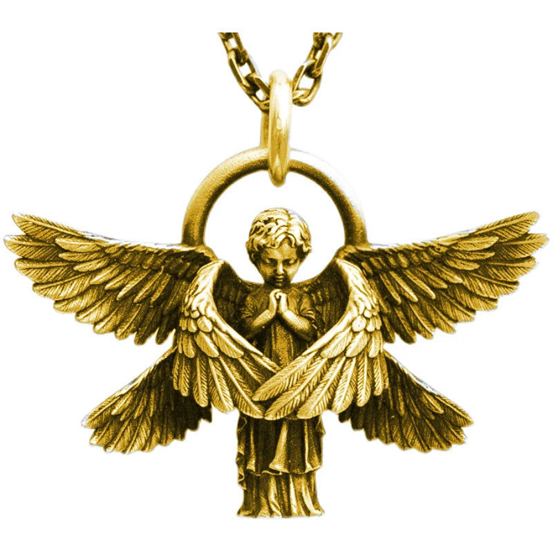 Classic Silver Plated Praying Angel Wings Pendant Necklace Men Women Fashion Protection Amulet Jewelry Birthday Gift