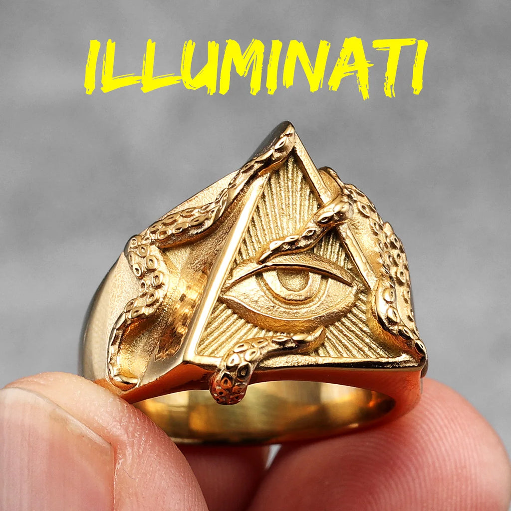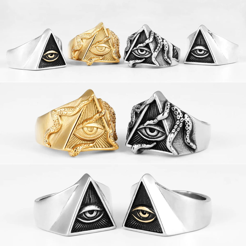 Freemason Illuminati Triangle Masonic Stainless Steel Mens Rings Punk for Male Boyfriend Biker Jewelry Creativity Gift Wholesale