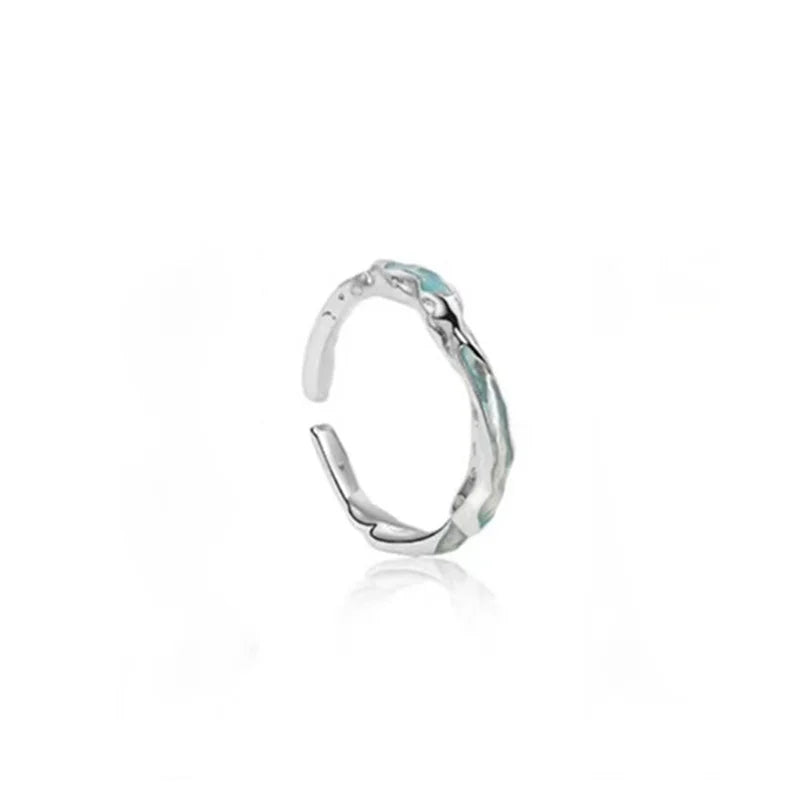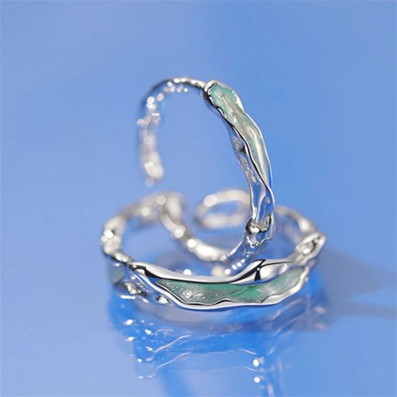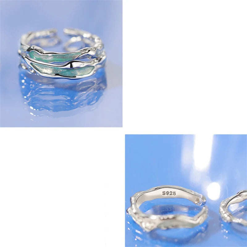 Fresh Green Irregular Ripple Dropped Adhesive Open Ring For Men Jewelry Trendy 925 Silver Couple Rings Male Finger Accessories