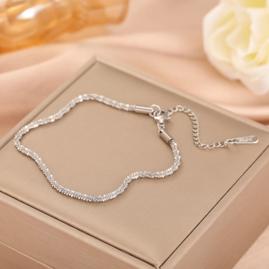 HIPEE Fashion Shiny Basic Chain Bracelet for Women Girls Stainless Steel Link Chain Adjustable Bracelets Sparkling Twists Bangle