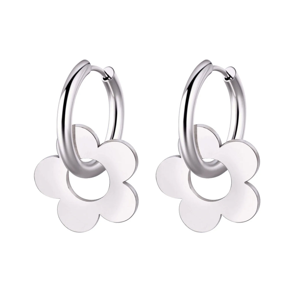HIPEE Fashion Sunflower Circular Hoop Earrings Simple Removable Stainless Steel Earrings For Girls Birthday Party Jewelry Gift