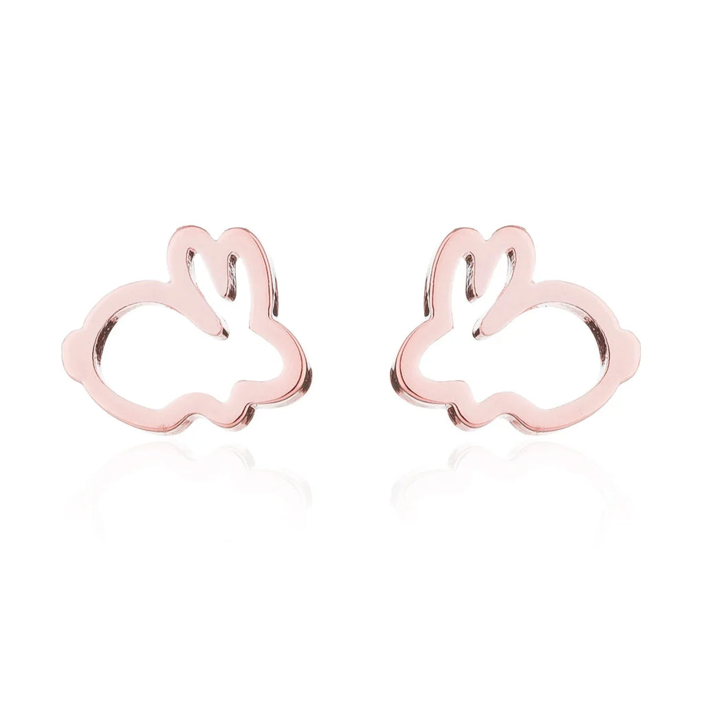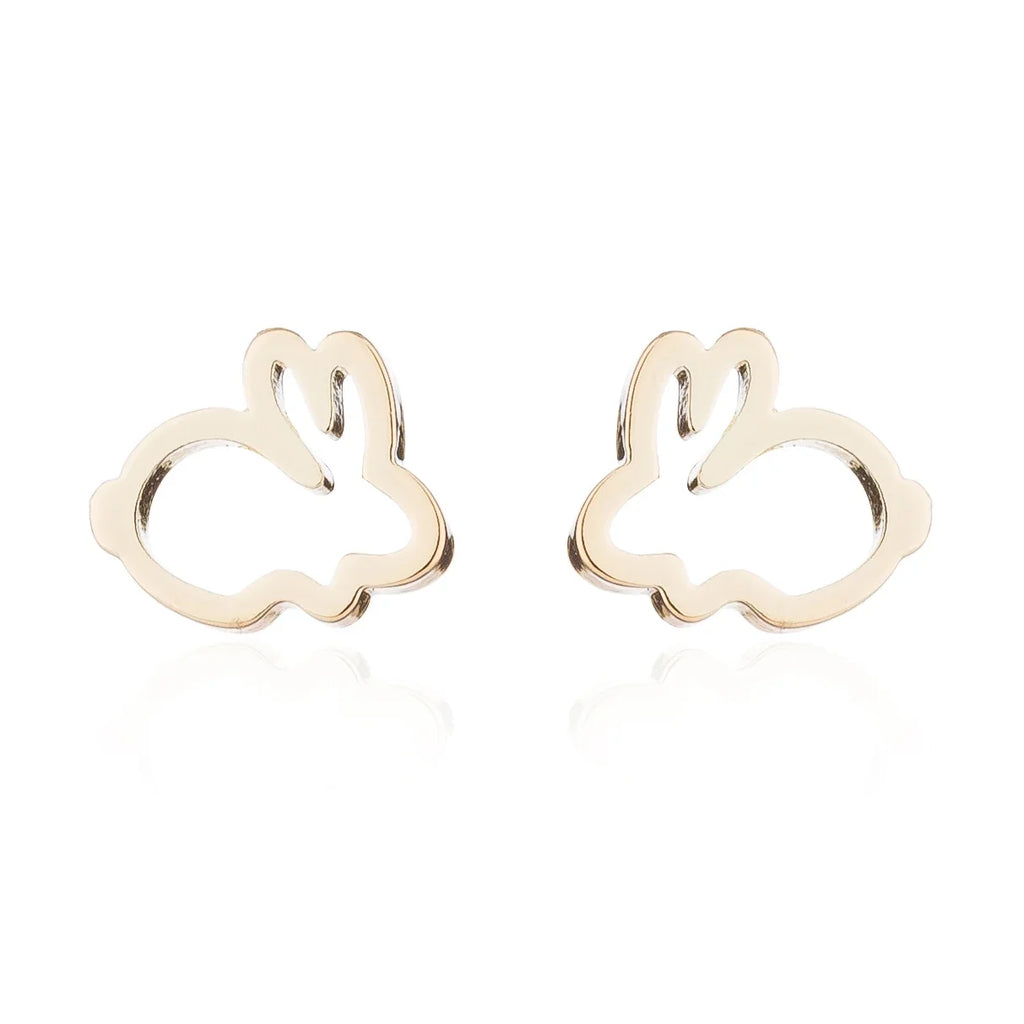 Hollow Stainless Steel Cute Rabbit Bunny Earring For Girl Ear Stud Fashion Jewelry Cute Animal Party Anniversary Stud Earrings