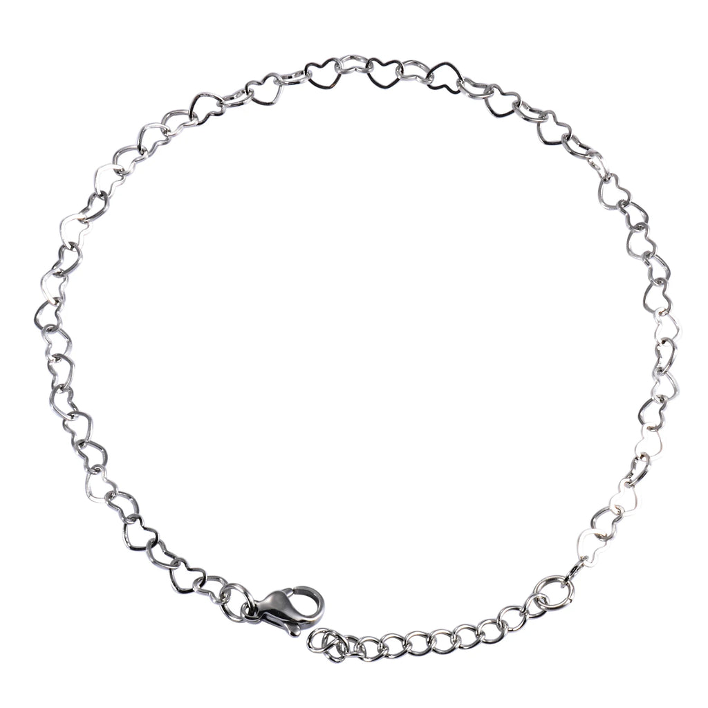 Hollow Stainless Steel Sweet Cute Love Statement Heart Chain Bracelet Anklet 3cm Extension for Girlfriend Women JewelryGift