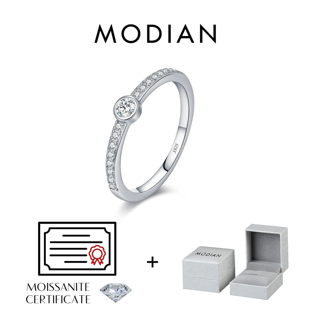 MODIAN 0.1CT D Color Moissanite 925 Sterling Silver Fashion Round Stackable Finger Rings For Women Daily Fine Jewelry